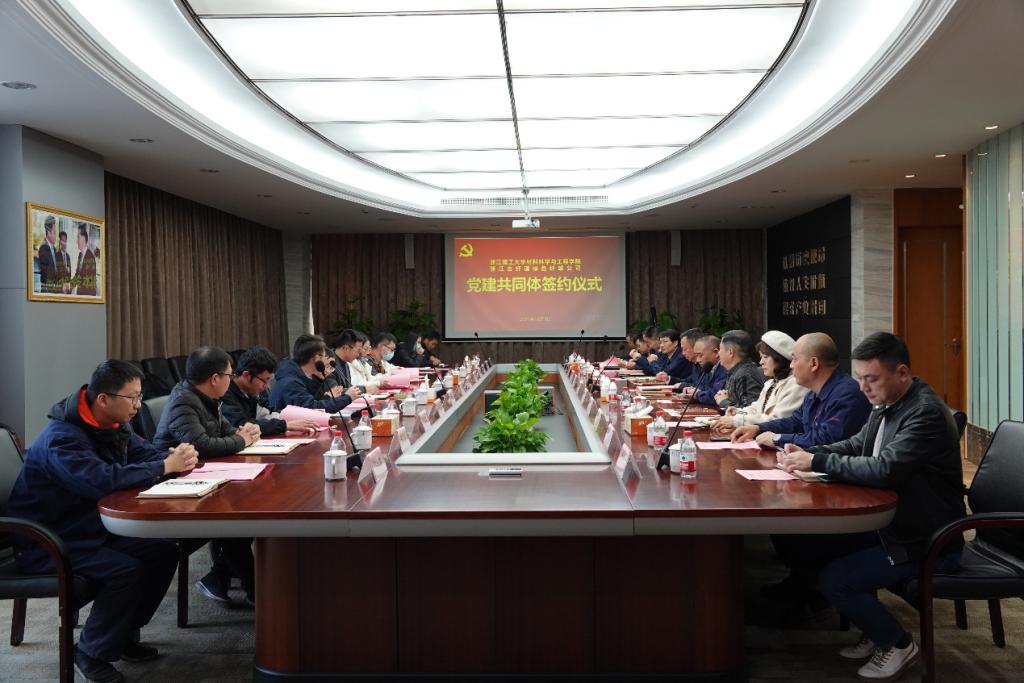12月3日下午,材料科学与工程学院与浙江古纤道绿色纤维有限公司举行党建共同体签约揭牌仪式,并开展党的十九届六中全会精神专题宣讲。古纤道公司党委书记、执行董事徐跃林,总经理金革及公司主要负责人,材料科学与工程学院党委副书记、纪委书记周照东,教学科研办公室主任易丽丽,团委书记、学生工作办公室主任张姗姗,高分子材料系主任张明等师生代表参加会议。会议由高分子材料系教工党支部书记陈世昌主持。