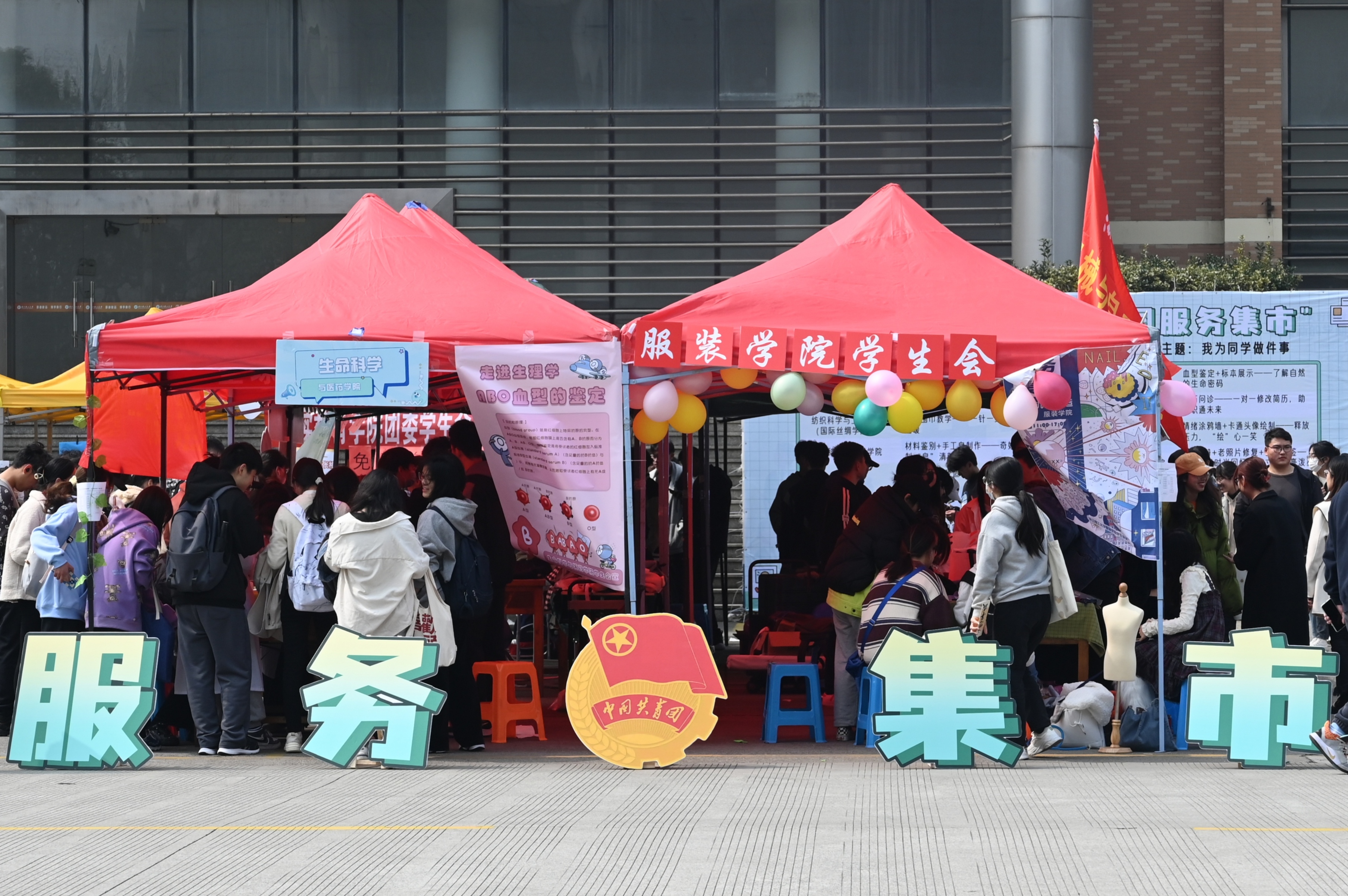 人气最高的还要数“实用型”服务项目。国际教育学院摊位上羽绒服、牛仔裤、布料扣子堆的满满当当,报名者们穿针引线、裁剪缝补,忙活着亲手改造自己的衣物。信息学院摊位前,一台台电脑排成几排,摊主们高效地解决着系统卡顿、病毒修复、清理灰尘等各种疑难杂症。同学们捧着修复流畅的电脑兴奋地感慨到“不出校门就能解决各种生活难题,服务集市太贴心了!”