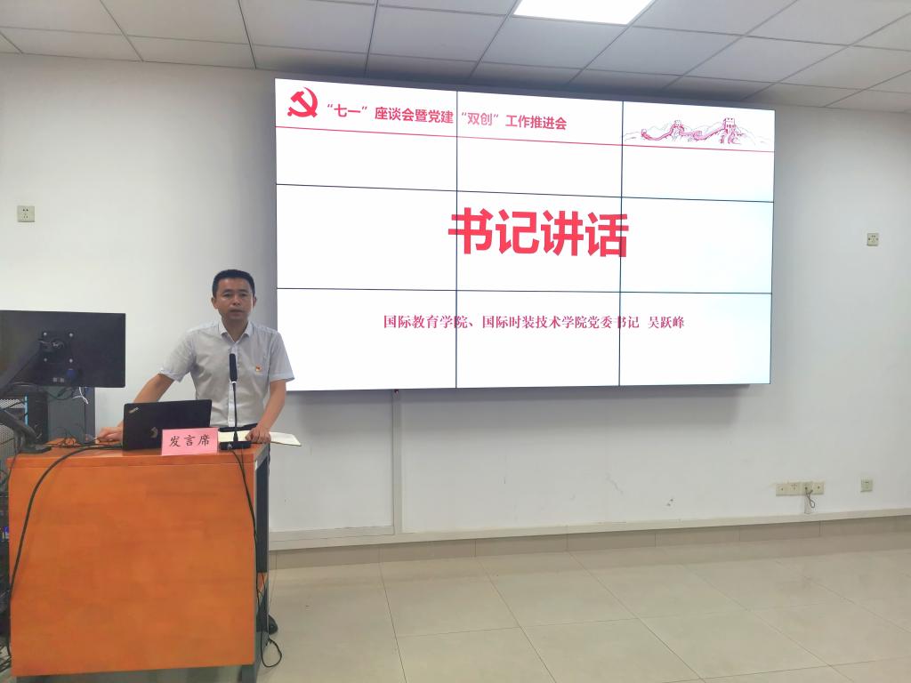 为深入学习贯彻浙江省第十五次党代会精神,积极响应学校党建“四个融合”行动计划,进一步夯实基层党组织建设基础,提升标准化、规范化建设水平,加快培育创建党建工作标杆学院、党建工作样板支部,6月29日,国际教育学院、国际时装技术学院召开“七一”座谈会暨党建“双创”工作推进会。学院党委书记吴跃峰,党委组织部、党委统战部组织科科长张俊以及学院党委领导班子和部分在校师生党员参加会议。会议由学院党委副书记阮财斌主持。