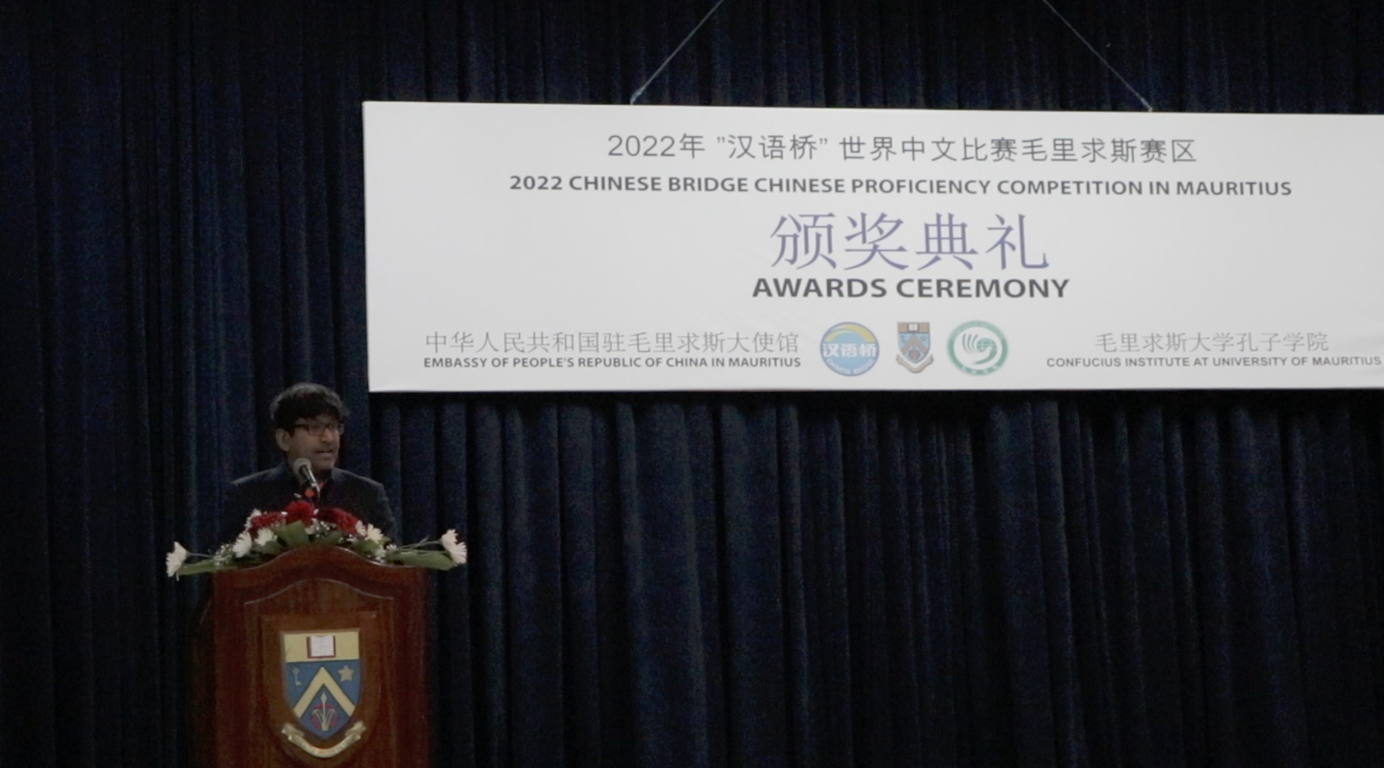 第21届“汉语桥”世界大学生中文比赛暨第15届“汉语桥”世界中学生中文比赛毛里求斯赛区的比赛历时两个多月,吸引了众多毛里求斯青年学子的积极参与。4月24日举办的初赛最终评选出大学生和中学生一等奖各1名、二等奖各2名、三等奖各3名,优秀奖大学生9名、中学生4名。6月19日举行的线上决赛最终评选出大学生和中学生一等奖各1名、二等奖各2名、三等奖各3名。颁奖典礼上,朱立英大使、穆罕默德·伊萨克·桑塔利副校长和各位到场嘉宾为获奖选手颁发了证书和奖品,并宣布决赛一等奖获得者大学生温春兰、中学生丘燕燕将代表毛里求斯赛区参加今年“汉语桥”全球总决赛。2022年“汉语桥”毛里求斯赛区的比赛为毛里求斯的大、中学生们提供了一个展示中文水平的舞台,激发了同学们学习中文的兴趣和热情,增进了他们对中国语言文化的了解,进一步加强了中毛两国文化交流与互鉴。
