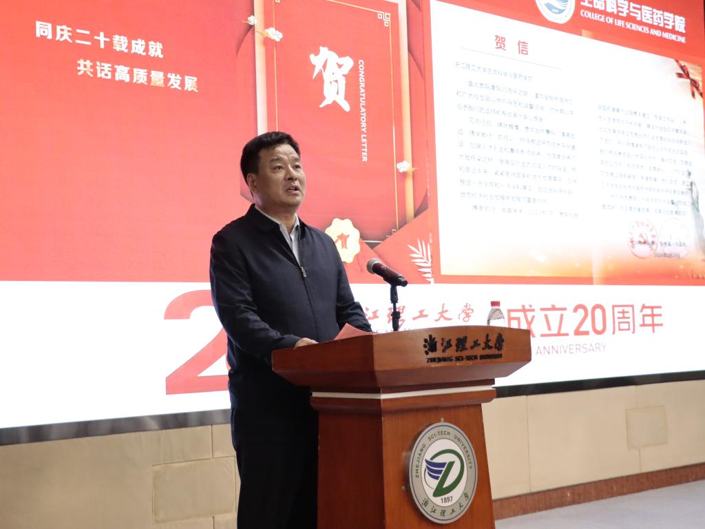 会上,中国计量大学生命科学学院院长徐沛教授代表该院及兄弟学院对我院建院20周年表示热烈祝贺。他指出,浙理生医学院与省内外兄弟学院相互支持、相互帮助,建立了密切的联系,结下了深厚的情谊,今后,兄弟学院之间要进一步加强合作交流,同心协力、并肩携手、共谋发展、共书新篇,为生命科学领域做出新的更大的贡献!