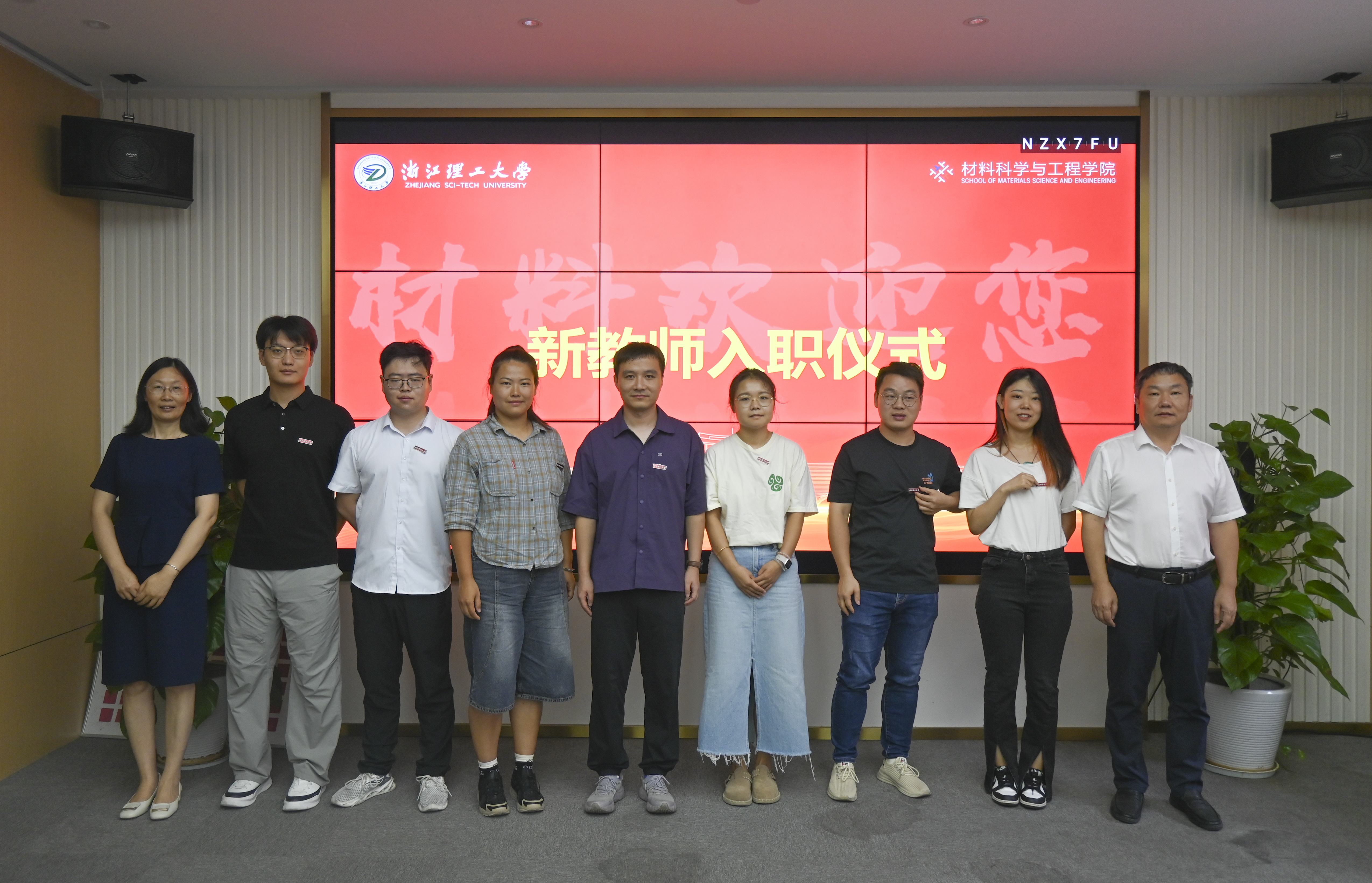 “材料欢迎您”新教师入职环节,学院领导逐一为新入职教师佩戴校徽并赠送纪念品。校徽既承载学校“厚德致远,博学敦行”的校训精神,也象征每一位教师传承薪火、潜心育人的责任与使命。