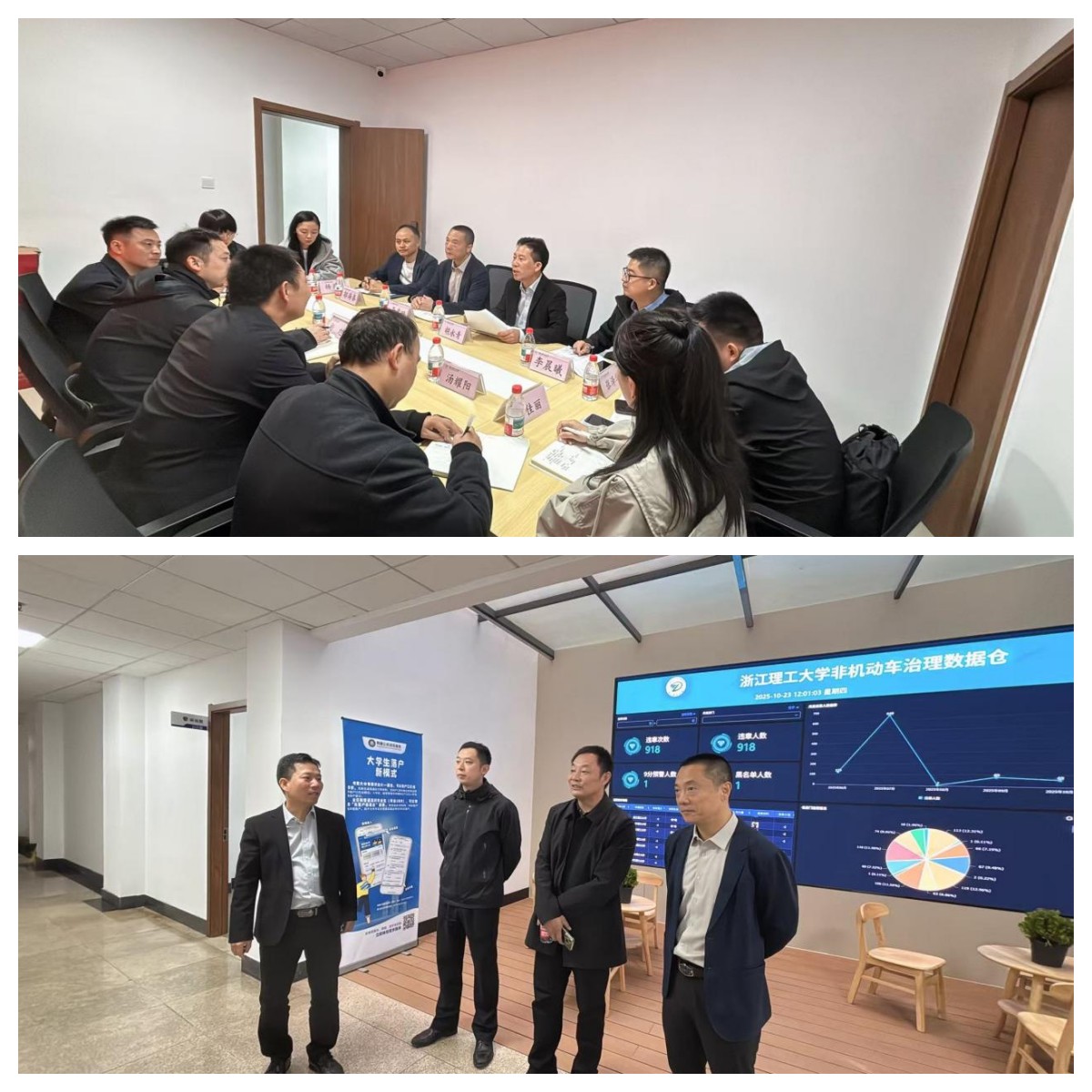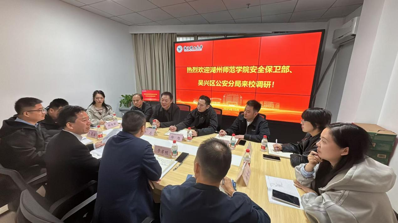 10月23日上午,湖州师范学院安全保卫部部长季志、吴兴区公安分局副局长杨旭一行来校调研校警驿站工作。校安全保卫部部长李孝明、副部长胡永青陪同调研并参加座谈。