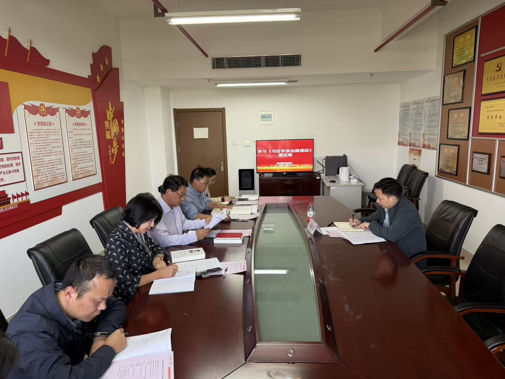 朱旭光领学了《习近平谈治国理政》第五卷中发展新时代中国特色社会主义文化相关内容,阐释了习近平文化思想的时代价值与设计表达,提出要坚持“两个结合”,推动中华优秀传统文化创造性转化、创新性发展。副院长王森领学了习近平总书记关于建设教育强国的重要论述,分享了对拔尖创新人才培养改革的思考。副书记朱茹华从学生思政工作角度分享了如何培养担当民族复兴大任的时代新人。党委委员张燕分享了对党建和业务融合发展的思考。