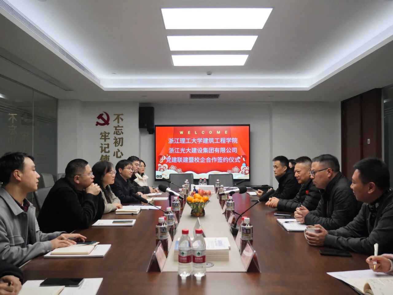 为深入学习贯彻党的二十届四中全会精神,加速推进教育、科技、人才一体化发展,驱动校企协同新动能,12月3日上午,浙江理工大学对外联络办公室(校友办)副主任应黎君,建筑工程学院党委书记李娜带队前往浙江光大建设集团有限公司开展党建联建暨校企合作签约仪式。浙江理工大学杭州校友会常务副秘书长、临平校友会秘书长阮国江,土木工程系教工党支部副书记、系主任王敏嘉及青年教师代表参加了仪式。