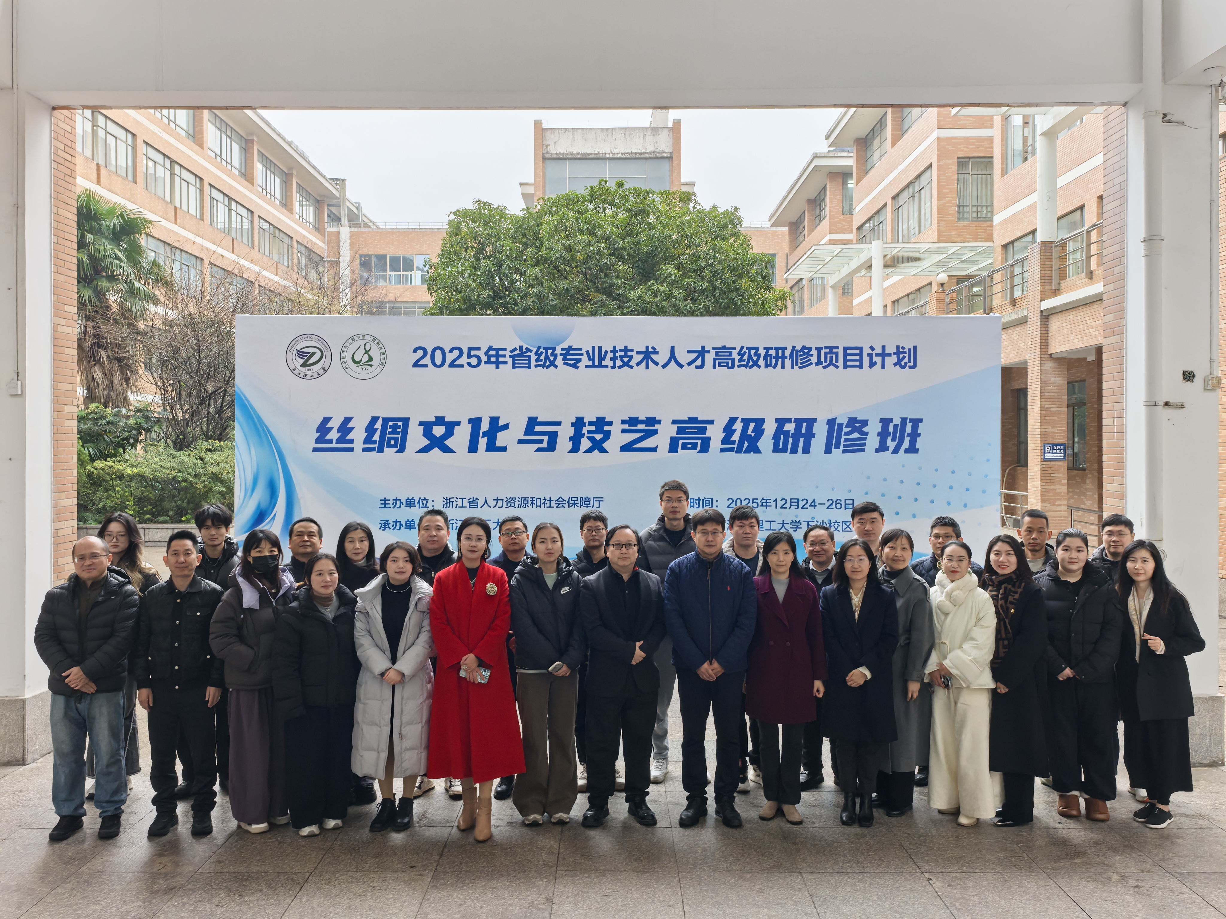12月24-26日,由浙江省人力资源和社会保障厅主办、浙江理工大学承办的丝绸文化与技艺高级研修班在我校顺利举行。浙江理工大学继续教育学院领导陈艳、纺织科学与工程学院(国际丝绸学院)党委副书记、纪委书记张孝凤出席开班仪式。纺织科学与工程学院(国际丝绸学院)副院长胡毅主持开班仪式。