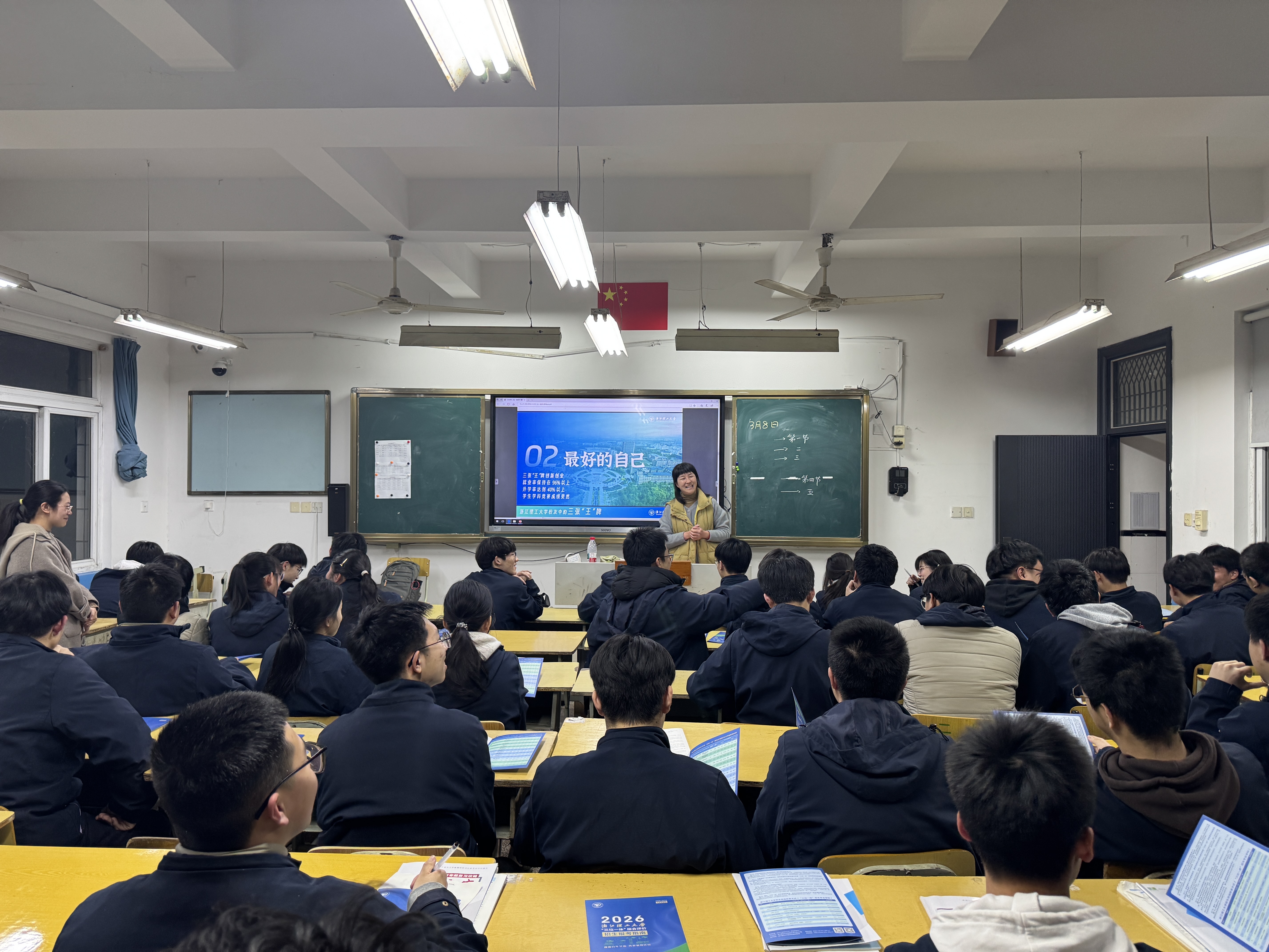 为帮助广大高三学子全面了解浙江理工大学“三位一体”综合评价招生政策,3月12日,材料科学与工程学院联合招生与就业指导处,走进杭州市富阳区第二中学开展“三位一体”招生宣传专场活动。招生与就业指导处副处长(主持工作)夏青、材料科学与工程学院辅导员孔泽涛及启新学院现代纺织创新班学生陈瑜组成宣讲团,为富阳区第二中学高三师生带来了一场全面、细致、生动的招生宣讲与政策解读,现场氛围热烈有序。