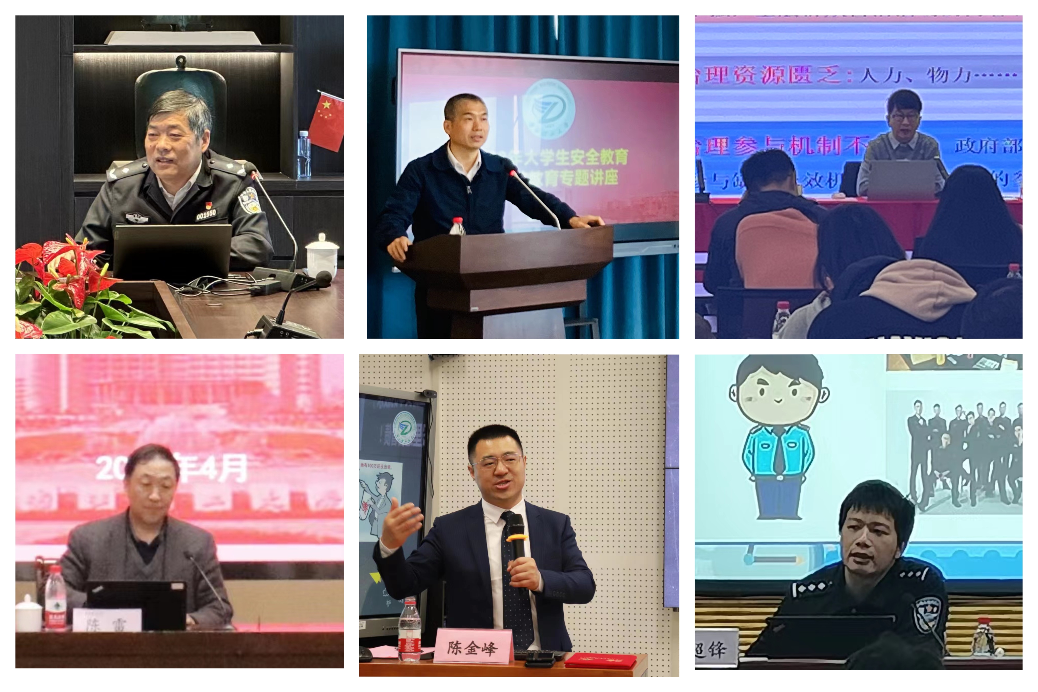 活动后,六位专家面向全体师生开展主题讲座。田胡杰围绕“枫桥经验”基层社会治理与高校“一站式”社区建设,为全体学生思政干部上了一堂专业课,项振茂围绕个人信息与财产保护、罗晴军围绕国防教育、陈雷围绕意识形态教育、陈金峰围绕大学生的法律关系、陈超锋围绕大学生网络安全,以分散式、全覆盖、大专题的形式,为16个学院近700位学生带来干货满满的一堂安全课。