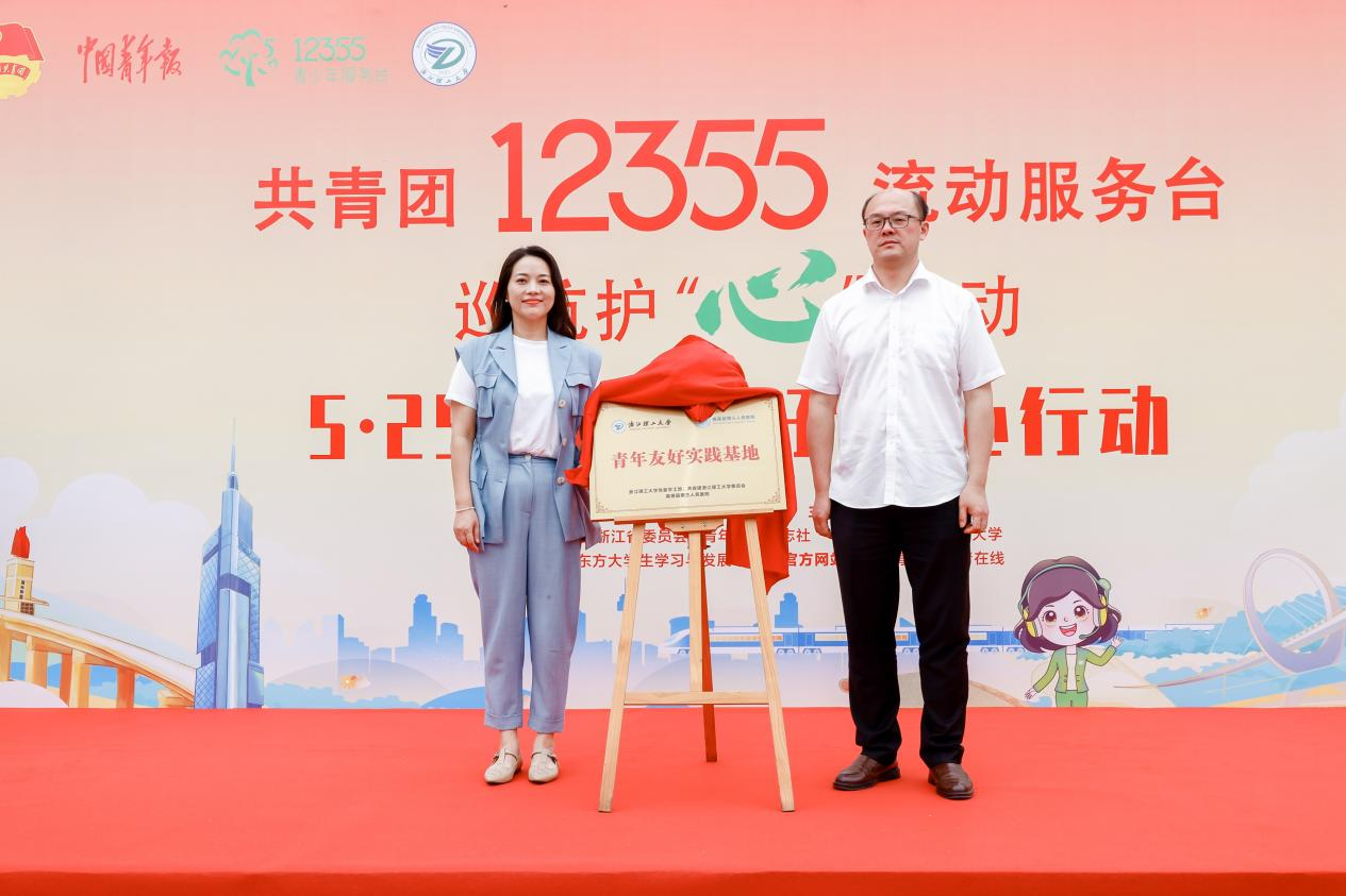 5月20日,共青团12355流动服务台巡航护“心”活动浙江理工大学站暨5·25“青年友好”健心行动启动仪式在下沙校区学生活动中心广场举行。团省委志工权益部副部长(主持工作)郭彧、团中央权益部干部孙雪琦、嘉善第三人民医院院长孙晓斐、中国青年报运营中心李栋梁、校党委副书记缪鲁加出席本次活动,