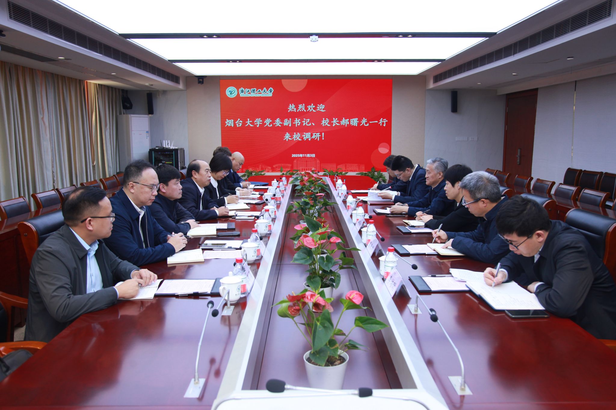郝曙光感谢浙江理工大学的热情接待。他表示,浙江理工大学推进登峰学科建设的工作举措和服务地方产业发展的创新实践经验具有重要的借鉴意义。希望以此次调研为契机,深入交流学习,着力提升学科建设水平,持续强化区域服务能力。