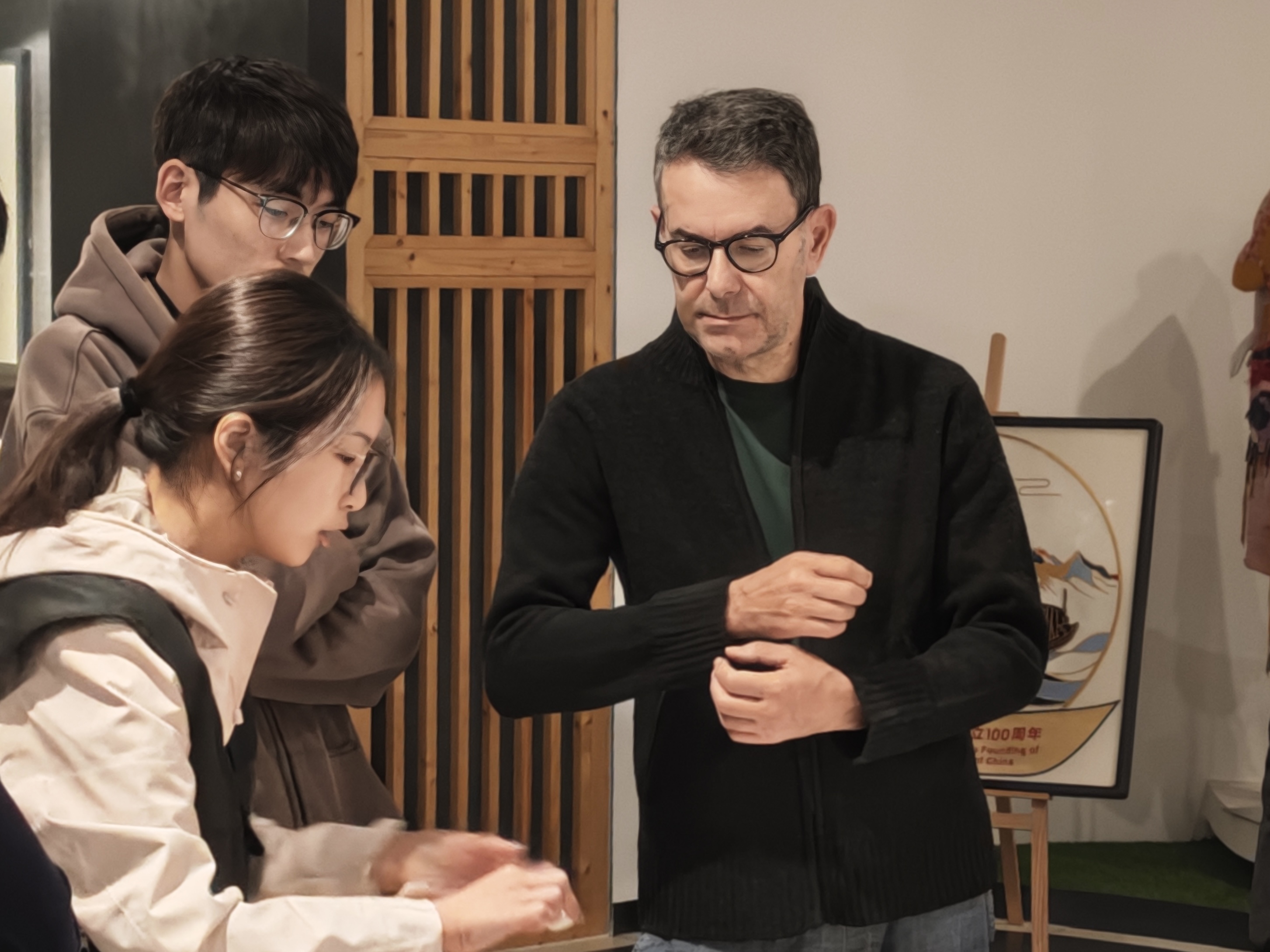 安东尼奥一行还参观了学校丝绸博物馆(校史馆),深入了解我校师生在丝绸纺织领域的原创作品和科技成果。