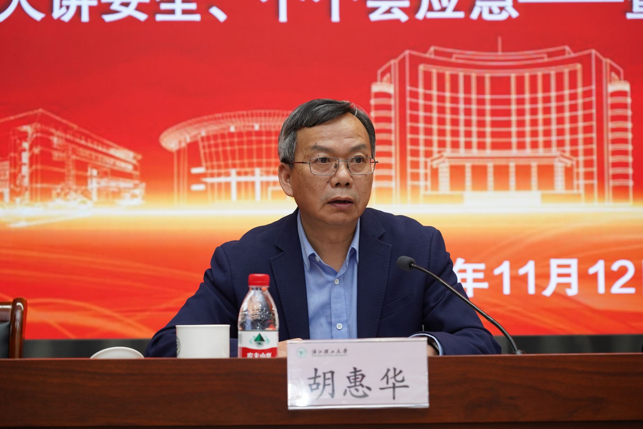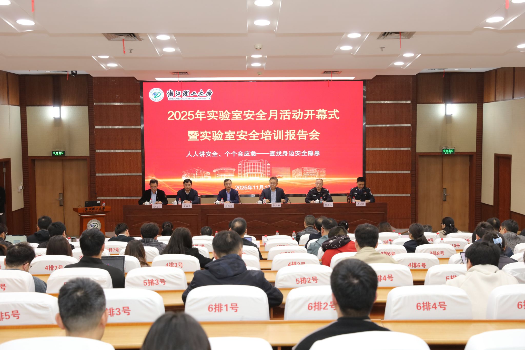 11月12日下午,浙江理工大学2025年实验室安全月活动开幕式暨实验室安全工作培训报告会在行政楼二楼报告厅举行。浙江省教育厅校园安全处一级调研员胡惠华,浙江理工大学副校长郭玉海出席会议。