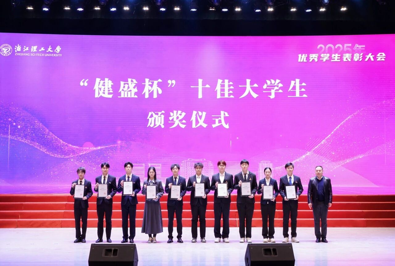 健盛集团公司代表、校研究生院负责人分别为“健盛杯”十佳大学生、十佳研究生颁奖。十佳大学生获得者、机械工程学院本科生陈佳炜,十佳研究生获得者、马克思主义学院研究生黄婧蕾分享了他们在浙理的成长故事。