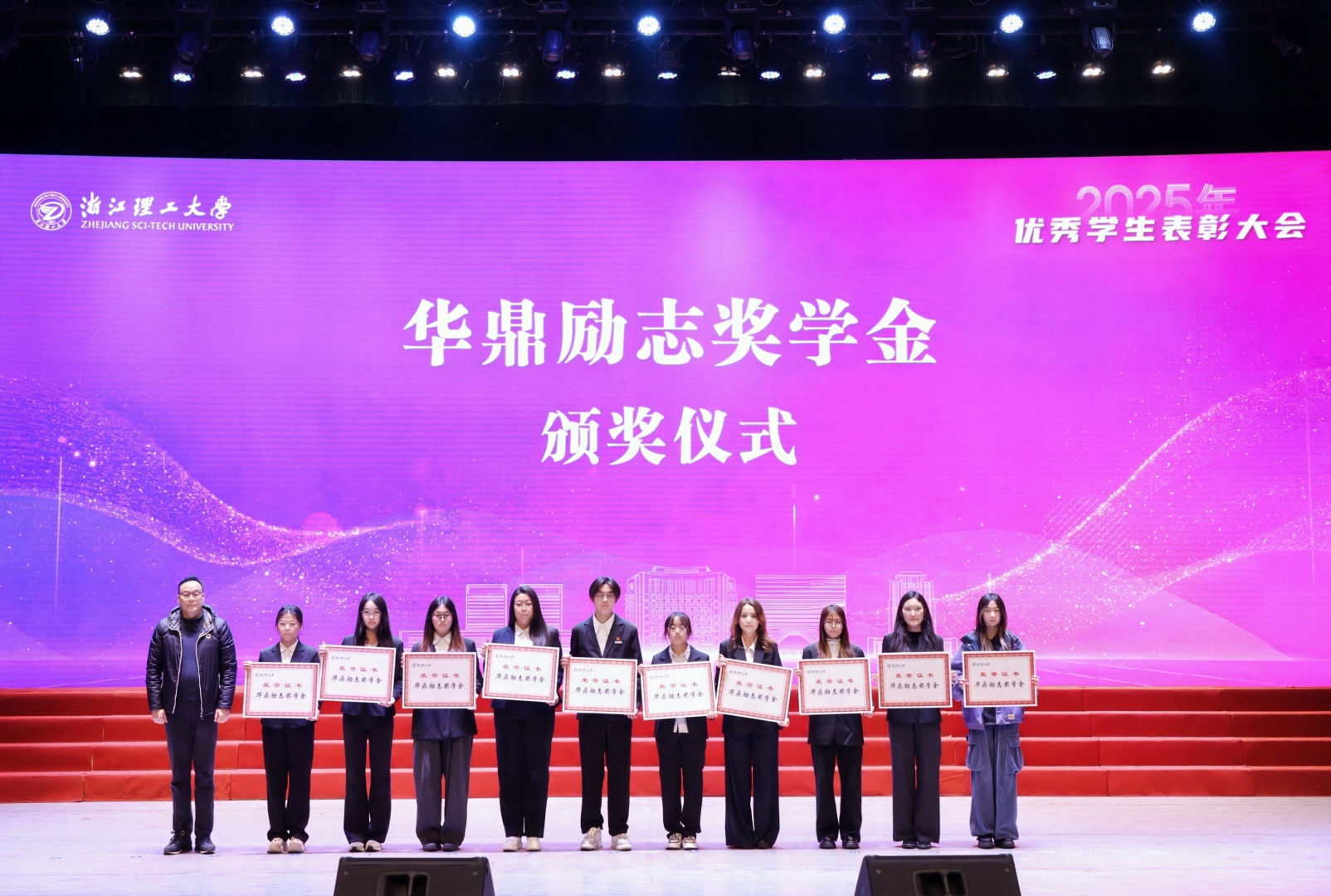 校学生工作委员会成员为国家奖学金、国家励志奖学金、省政府奖学金、校优秀学生奖学金、研究生学业奖学金、“纺织之光”奖学金获得者颁奖。宏达控股集团有限公司代表,1985级服装设计专业校友、浙江华鼎集团有限责任公司董事刘刚,浙江汇敦控股有限公司代表分别为宏达“三创”奖学金、华鼎励志奖学金、鹭涛励志奖学金获得者颁奖。国家奖学金获得者、服装学院研究生吴家笑,“纺织之光”奖学金获得者、纺织科学与工程学院本科生黄海城分享了他们的浙理奋斗历程。