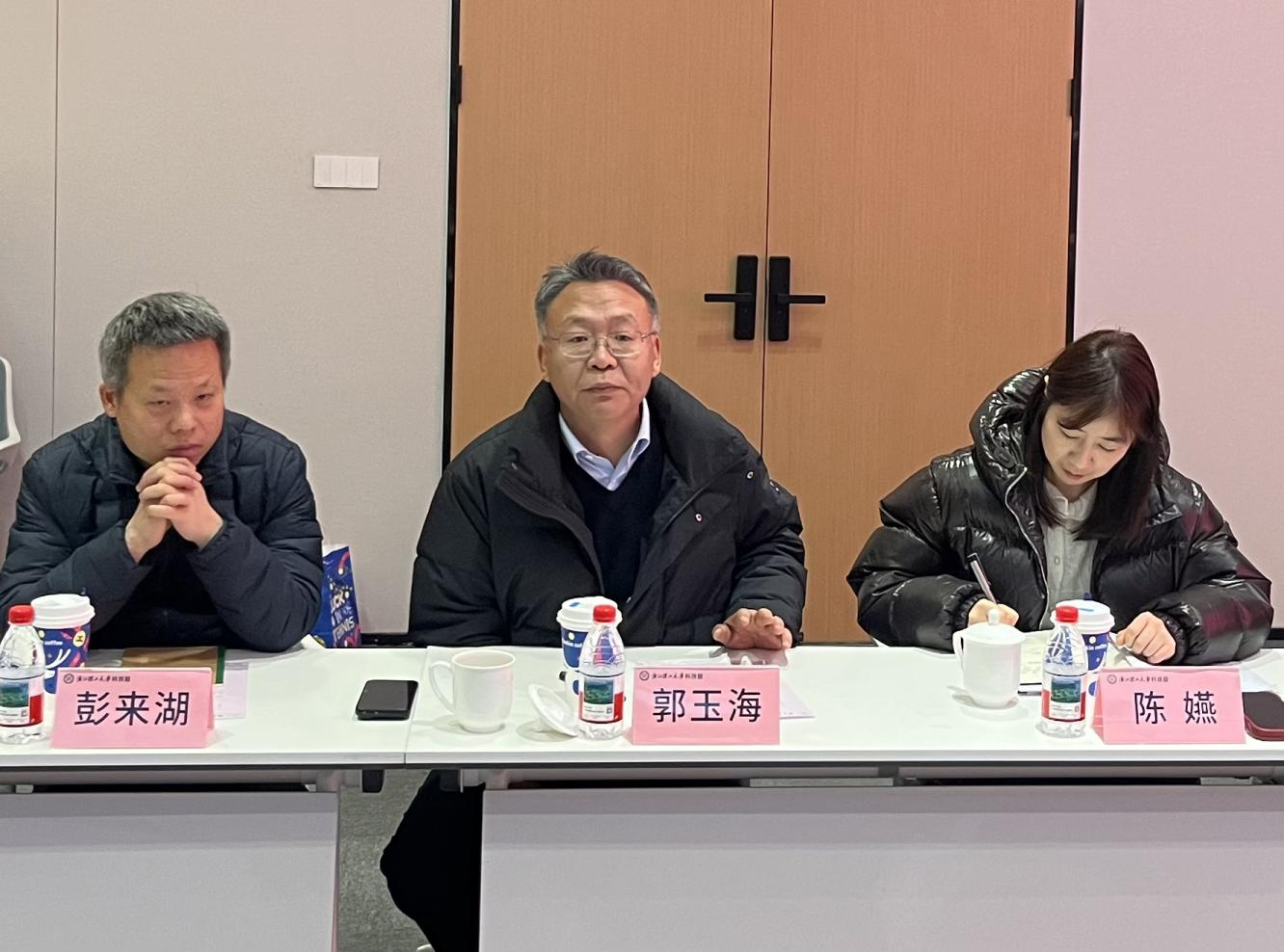 会上,郭玉海代表学校对周艳一行的到访表示热烈欢迎。他指出,浙江理工大学始终高度重视校地合作与产学研用融合,大学科技园是学校服务地方经济发展、推动科技成果落地的重要平台,期待以此次调研为契机,深化与柯桥区在成果转化、产业升级和人才培育等领域的合作。