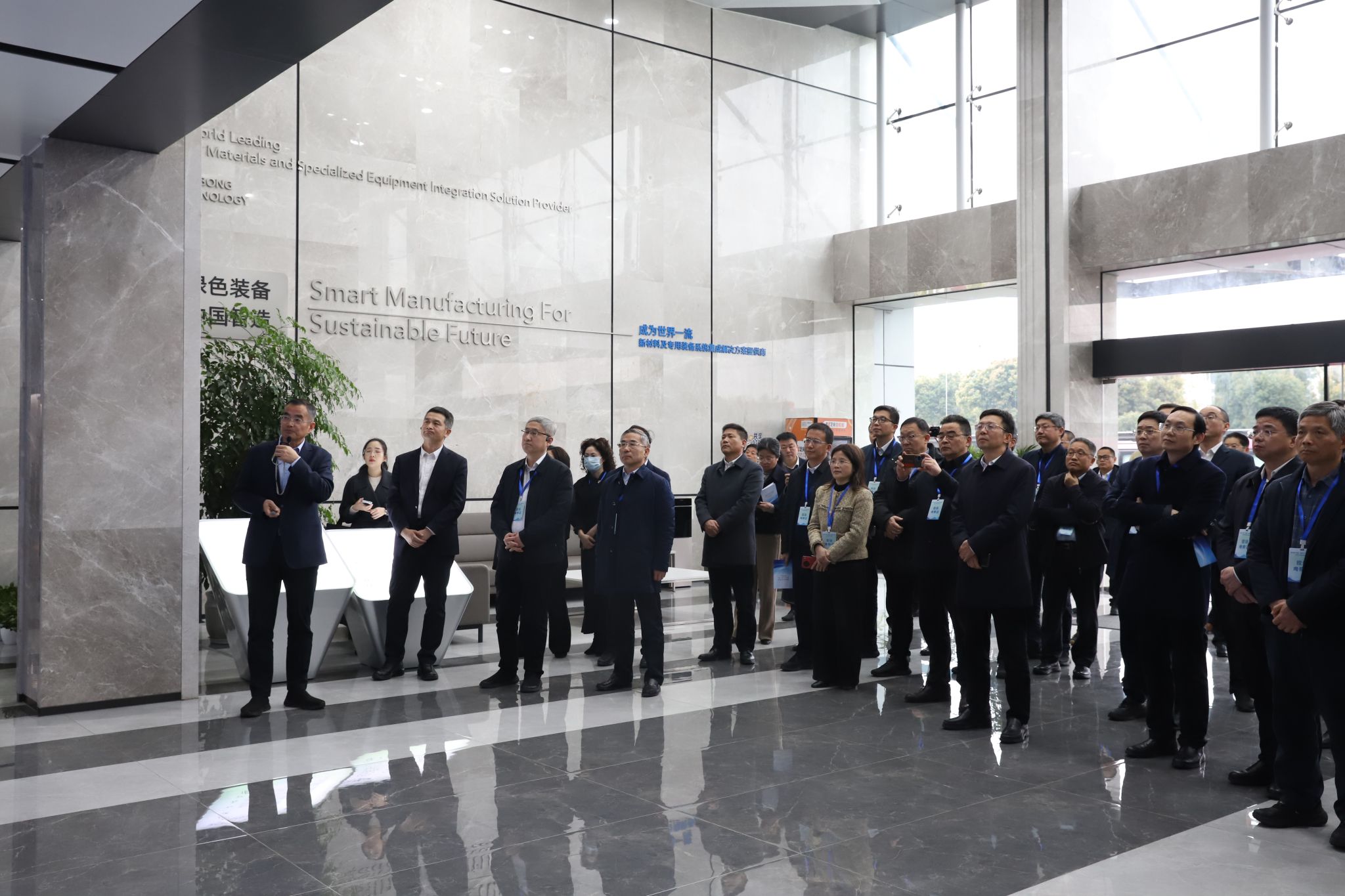 会前,与会代表分组开展实地考察活动。赵全军、陈文兴在浙江现代纺织技术中试平台陪同考察,副校长姚菊明在浙江精工集成科技股份有限公司陪同考察。