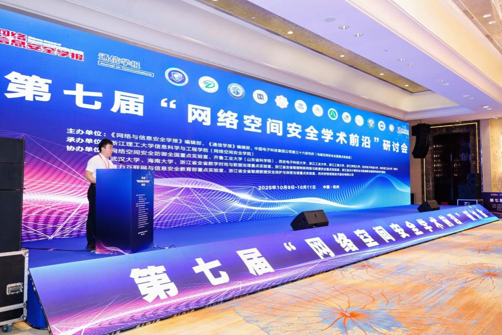 10月9日—11日,第七届“网络空间安全学术前沿”研讨会在杭州成功举办。本次会议由《网络与信息安全学报》编辑部、《通信学报》编辑部、中国电子科技集团公司第三十六研究所(电磁空间安全全国重点实验室)主办,浙江理工大学信息科学与工程学院(网络空间安全学院)承办。中国工程院院士方滨兴、浙江理工大学副校长姚菊明、中国科学院信息工程研究所技术副总师李凤华出席本次会议并致辞。会议开幕式由浙江理工大学信息科学与工程学院(网络空间安全学院)院长沈剑主持。