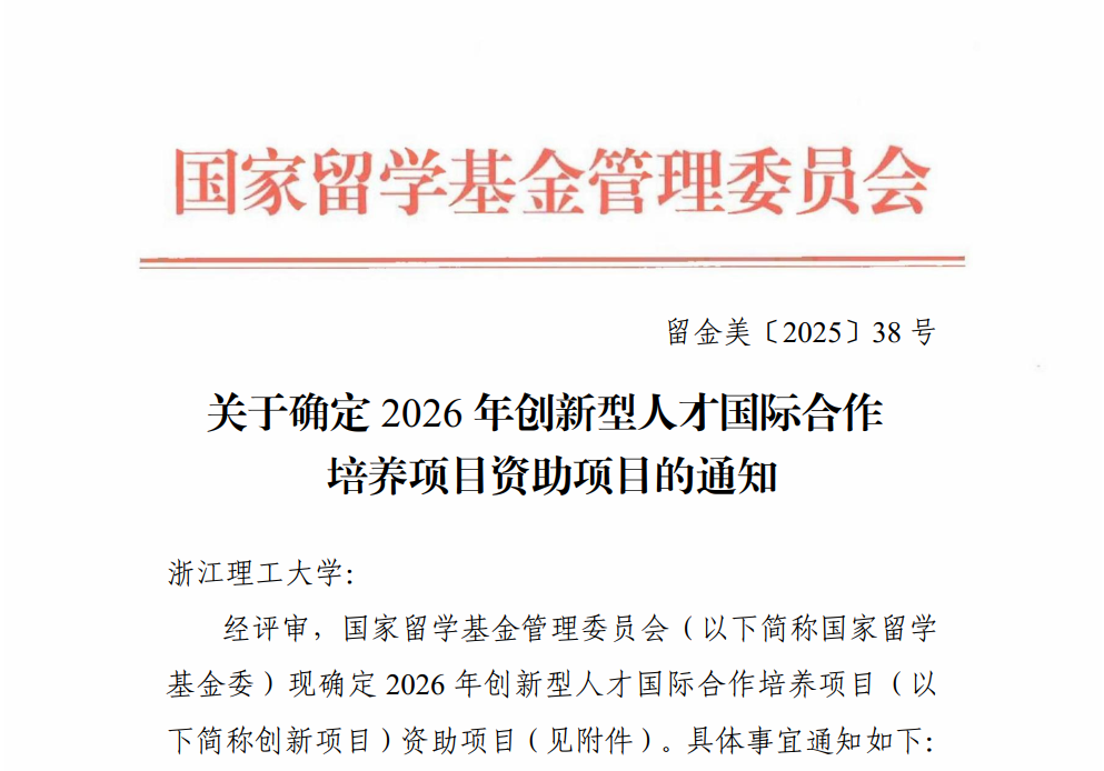 近日,国家留学基金管理委员会发布2026年创新型人才国际合作培养项目、艺术类人才培养特别项目资助项目,学校申报的“功能纤维与纺织新材料创新型人才培养项目”“艺术与智能科技设计型艺术类人才培养项目”成功获批。其中,“艺术与智能科技设计型艺术类人才培养项目”是我校首次获批艺术类人才培养特别项目。