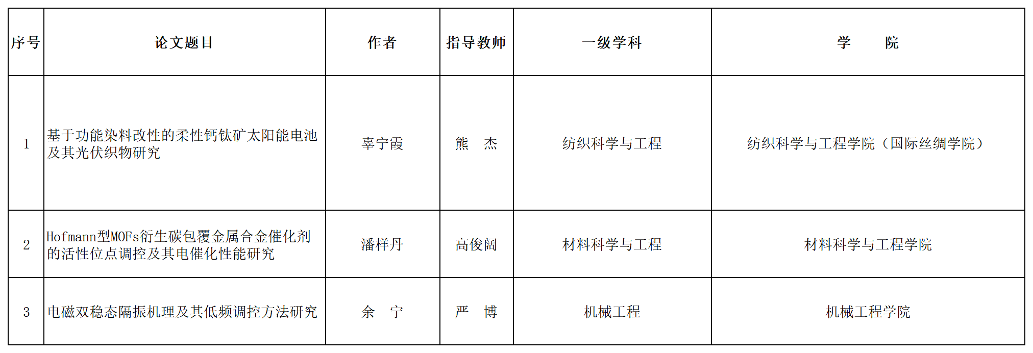 浙江理工大学2024年浙江省优秀博士学位论文名单