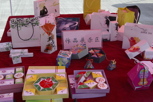 10月21日,材料与纺织学院包装系同学结合本专业特色,在学生活动中心文化广场举办了以“我爱我的祖国”为主题的团日活动,同时秉承西湖博览会的理念,开展包装作品系列展。07包装(1)班的每位同学用亲手设计制作的纸盒堆叠成一个高2.3m、长3m、深0.5m 大小的中国地图。地图正面由同学以签名方式绘制而成的长江和黄河构成,生动形象,富有历史意义。此外,活动还安排了留言小纸条,让每位经过的同学写下他们对祖国的祝福。而包装作品系列展展品主要为应届毕业生的毕业作品设计,以立体的方式展现了作品的精致。