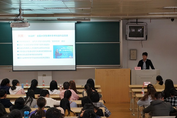 大会上,赵凯鹏对“挑战杯”全国大学生课外学术科技作品大赛进行了深度解读。他指出,该比赛地位高,对于大学生来说很重要,对参赛学生来说收获很大。学校将承办的2019年“挑战杯”省赛是一个展示中华学子创新风采的舞台。随后,他对“创青春”中国大学生创业计划竞赛从竞赛徽章、选手参赛资格、主题赛事、专题赛事、参赛步骤等方面进行了详细介绍。为了使同学们了解得更深入,赵凯鹏老师还分享了“创青春”大赛中的优秀作品案例。最后,他对新传学子提出了要积极参赛、合理选题、早做准备三条建议。朴实恳切言犹在耳,一字一句受益匪浅。