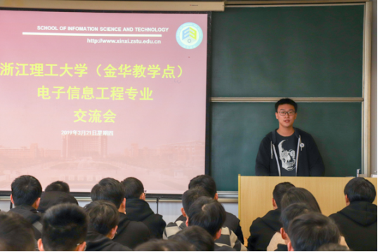 在桂花园餐厅用餐完毕后,同学们首先参观了丝绸博物馆,通过讲解员的介绍和馆内陈设了解我校一百二十多年的悠久历史。参观结束后,在2N-426举行了交流会,电子信息工程专业的老师吴龙首先介绍了我院的发展历程,对学院的专业特色、学科竞赛、就业前景等方面作了详细的介绍。接下来,电子信息工程专业优秀研究生代表17级温雨舟、18级史彤彤,15级推免生戴豪宇与来访的师生分享了自己的学习经验,从日常学习计划的安排、常见问题的克服,到具体专业课程的学习方法,日后的发展规划都做了详尽的分享。最后,吴龙结合时事热点以及科技发展的趋势,为学生更好地进行专业学习提供了明确的指导。