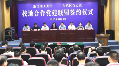 2020年5月29日上午,生命科学与医药学院党委书记丁春平、院长梁宗锁受邀带领植物学与生态学学科组党支部(“全省首批党建工作样板支部”),前往余杭区百丈镇参加“校地合作党建联盟、共助百丈乡村振兴”签约仪式。仪式由百丈镇党委副书记、镇长宋亮主持,余杭区委组织部(人才办)副部长何彦,余杭区区农业农村局、区人力资源和社会保障局、区卫健局相关领导,百丈镇领导班子成员及机关中层正职干部、村社党组织负责人、组织委员,百丈镇相关企业负责人参加仪式。