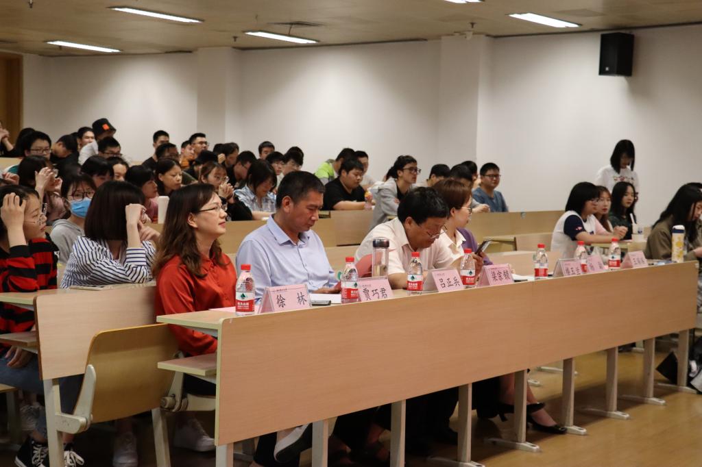 动员大会后,拟录取复旦大学的周昀茜,拟录取浙江理工大学的胡书杭和乔子木,已录取新加坡国立大学的徐婷婷等四位高年级同学从如何备考、如何选择调剂和出国深造等方面作了考研经验分享。