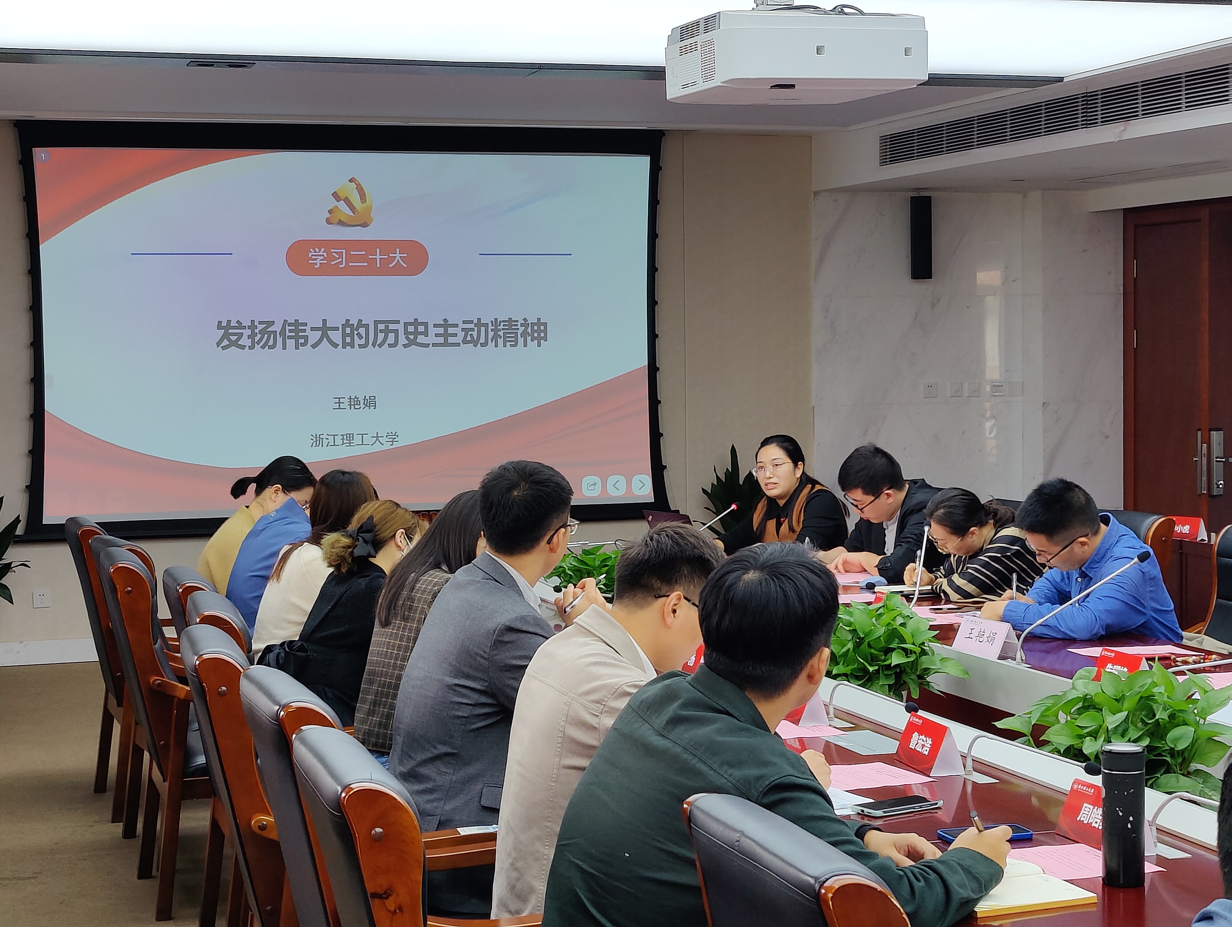 马克思主义学院教研部主任、副教授王艳娟作了题为《发扬伟大的历史主动精神》的报告。她用生动的素材和详实的史实阐释了历史主动精神的要义,报告既有理论高度、又有思想深度,对大家深刻领悟党的二十大报告的核心要义和精神实质,凝聚思想共识、强化使命担当有启发作用。