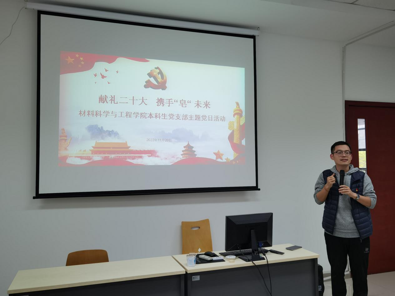 面向大学生党员骨干——铸牢理想信念。为教育引导青年大学生真正把思想和行动统一到党的二十大精神上来,11月2日,校“8090”辅导员新时代理论宣讲团团长、学院党委副书记周照东面向材料科学与工程学院分党校入党积极分子培训班、预备党员培训班学员,以“立志做有理想、敢担当、能吃苦、肯奋斗的新时代好青年”为主题进行党的二十大精神主题宣讲,教育和引导同学们自觉主动深入学习践行党的二十大精神,努力提高政治素质和理论素养,树立远大理想、坚定信仰信念、争做时代新人。11月10日,周照东走进艺术与设计学院,面向学院党员骨干,开展以“让青春绽放绚丽之花”为主题的专题宣讲,宣讲以专题沙龙形式开展,由授课演讲改为交流访谈,不仅增强了老师与学生之间的互动,也加深了大学生青年对二十大精神的理解,增强了共鸣,激发了他们在新时代奋进的热情和担当意识,将饱满的激情投入党的二十大精神的学习,助力推进中华民族伟大复兴。