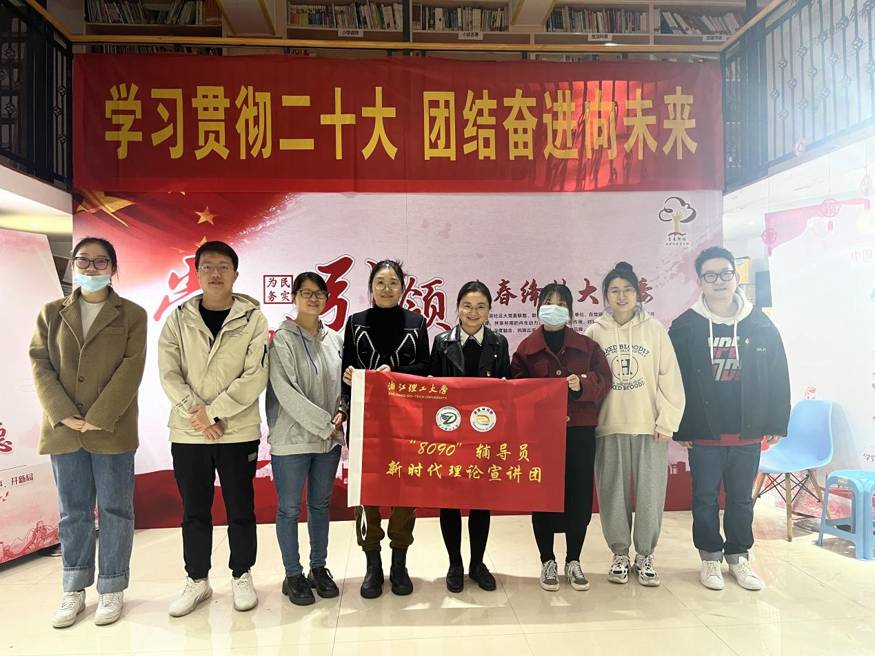 面向街道社区——共鸣砥砺奋进。11月25日,张姗姗走进钱塘区白杨街道云滨社区党群服务中心开展主题宣讲,她围绕党的二十大报告中提到的若干宝贵“精神”,向在场社区居民、青年展示了浙理青年师生在疫情防控、科技助农、文化传播、学术科研等方面的优秀事迹,呼吁大家为全面建设社会主义现代化国家而团结奋斗。