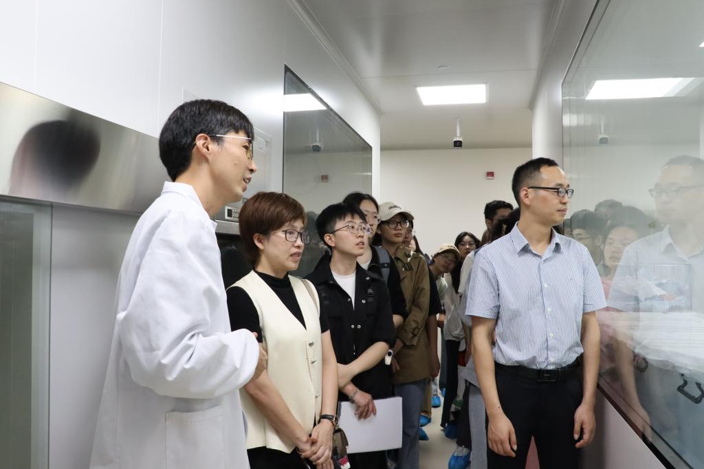 楼玉兰一行在公司高层管理人员的带领和介绍下参观了公司15号楼、11号楼研发实验室、工艺开发实验室等。实验室先进的仪器设备,有条不紊的工艺流程和干净整洁的实验环境让同学们切身感受到了现代生物产业一线的蓬勃发展,激发了同学们的学习和就业热情。