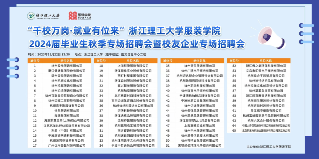 最后,祝贺“千校万岗·就业有位来”浙江理工大学服装学院2024届毕业生秋季专场招聘会暨校友企业专场招聘会顺利举办!