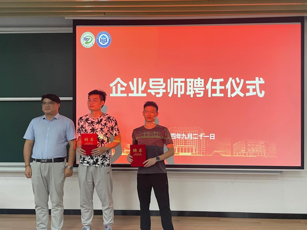 为了让同学们更好了解社会,了解企业,浙江理工大学信息科学与工程学院聘请陆斌、乔志奇为电子信息工程专业校外企业导师。张一嘉为企业导师代表颁发聘书。