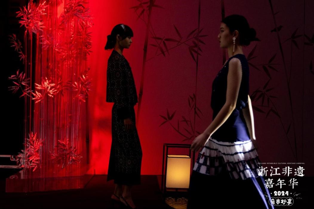 T台秀现场,灯光璀璨,音乐悠扬。一件件非遗服饰,承载着非遗匠人和时尚新生的集体智慧,它们不仅展示了浙江非遗文化的庞大基因与地域风格,更传递了新时代浙江人民对中华优秀传统文化的赓续与创新。