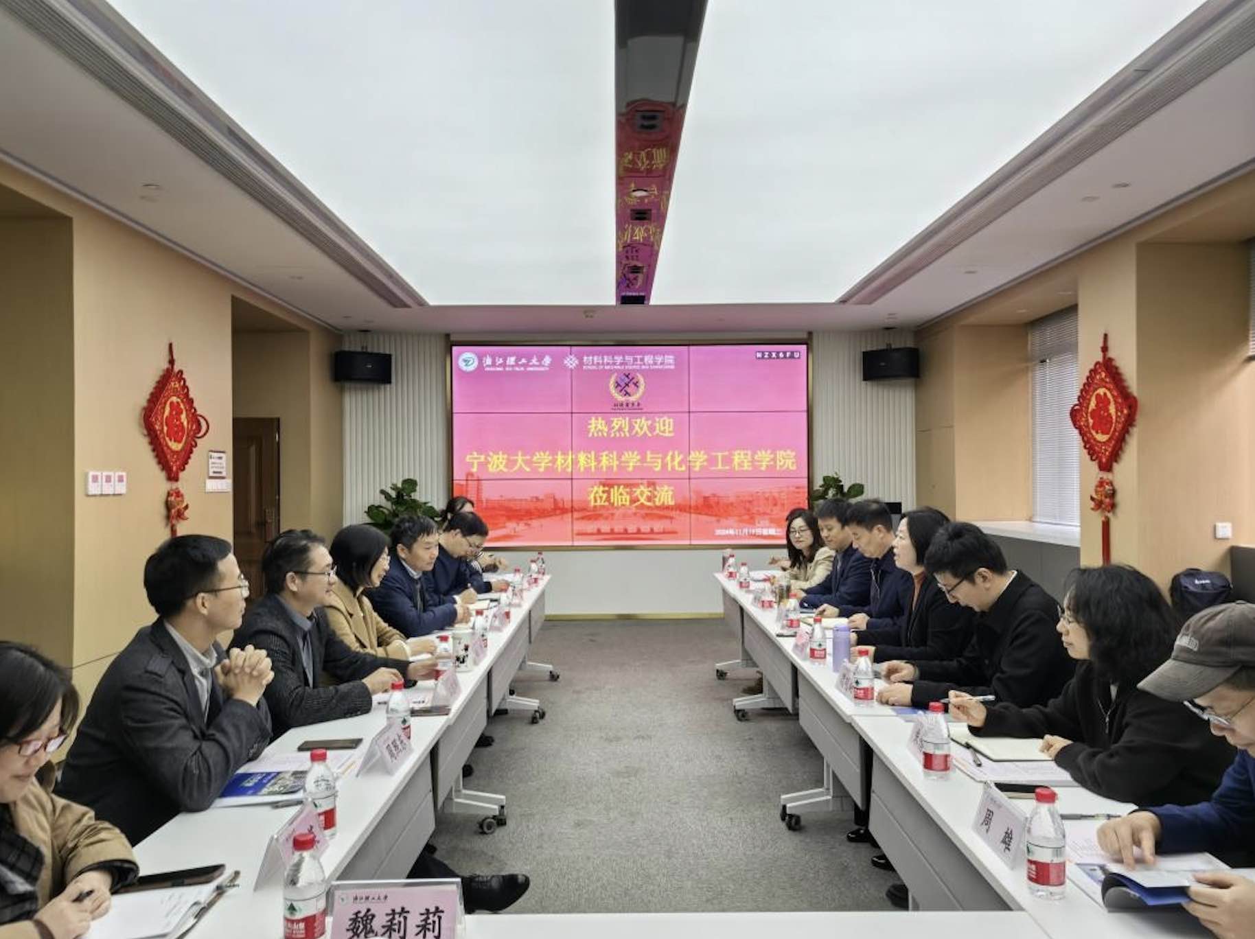 11月19日上午,宁波大学材料科学与化学工程学院全体领导班子成员在党委书记陶娟、院长丁传凡带领下到浙江理工大学材料科学与工程学院开展调研交流。学院党委书记仰滢,院长张先明带领班子成员参加调研交流。
