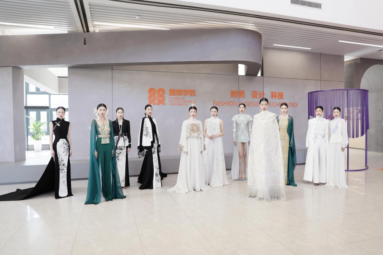 来自服装表演专业的专业模特们身着提炼融合了中式美学的非遗高定作品与服装学院崔荣荣教授团队的设计创作,在学校的书香空间中为全院师生演绎出一场具有东方雅韵浪漫的时尚大秀,共同奏响了中华传统文化的乐章。