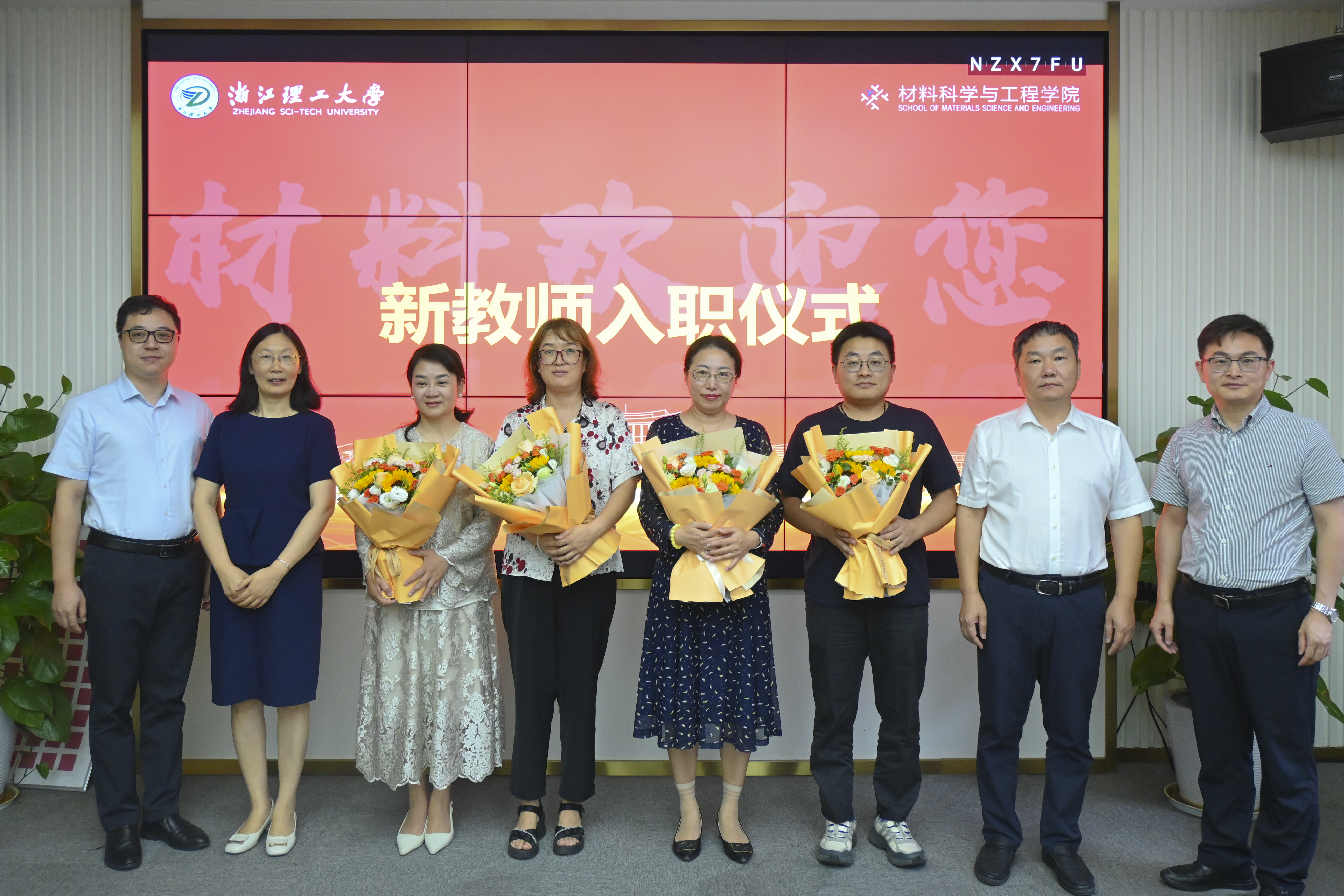 “材料欢迎您”新教师入职环节,学院领导逐一为新入职教师佩戴校徽并赠送纪念品。校徽既承载学校“厚德致远,博学敦行”的校训精神,也象征每一位教师传承薪火、潜心育人的责任与使命。