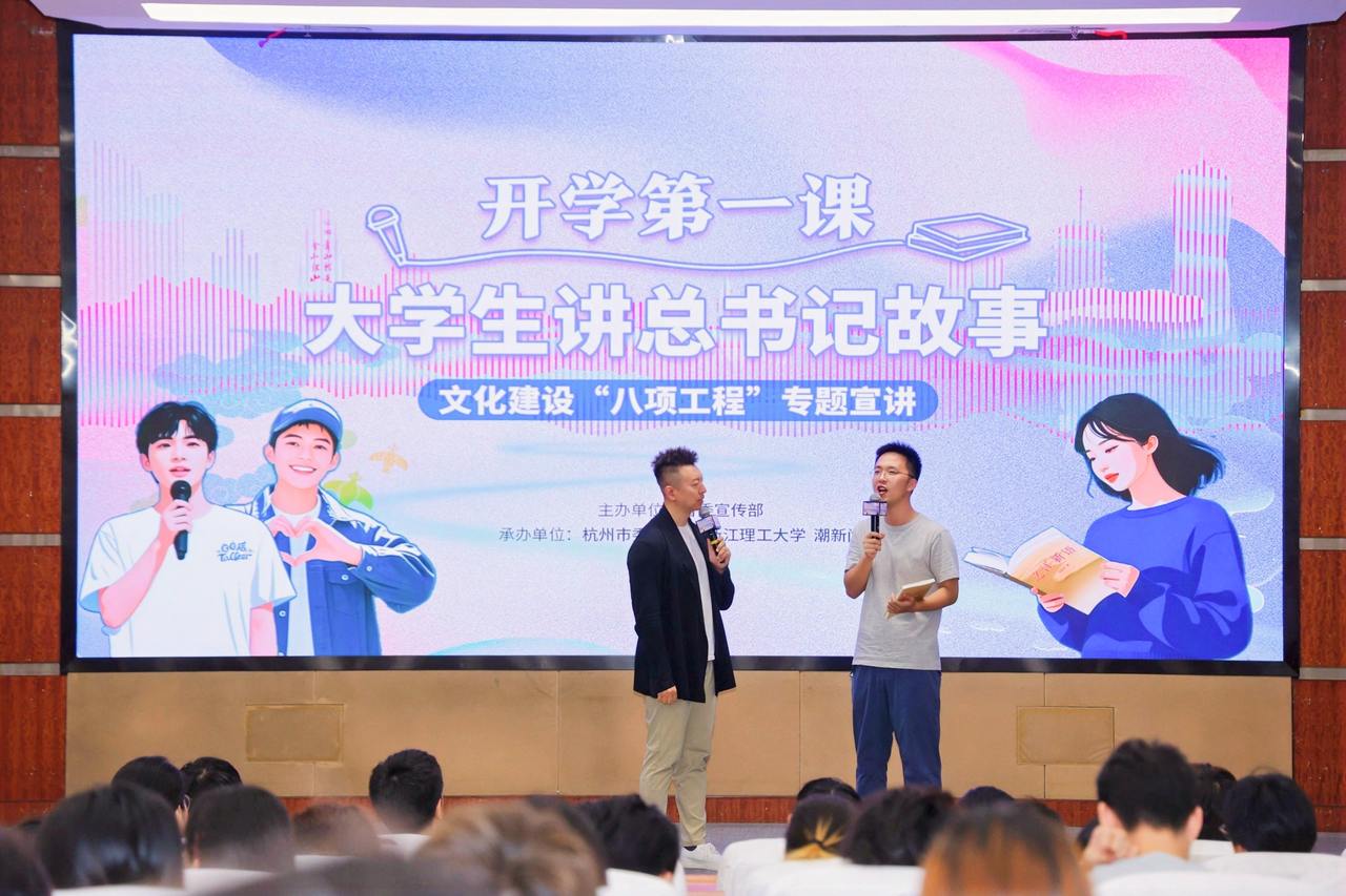 9月30日,“开学第一课——大学生讲总书记故事”活动在浙江理工大学二楼报告厅举办。当AI对话先贤、越剧邂逅理论、横店“霸总”现身说法,传统理论宣讲的“次元壁”被彻底打破,一场融合动漫、戏曲与国潮等元素的“高能”宣讲让浙江文化建设“八项工程”的深厚内涵在Z世代的创意表达中鲜活起来。