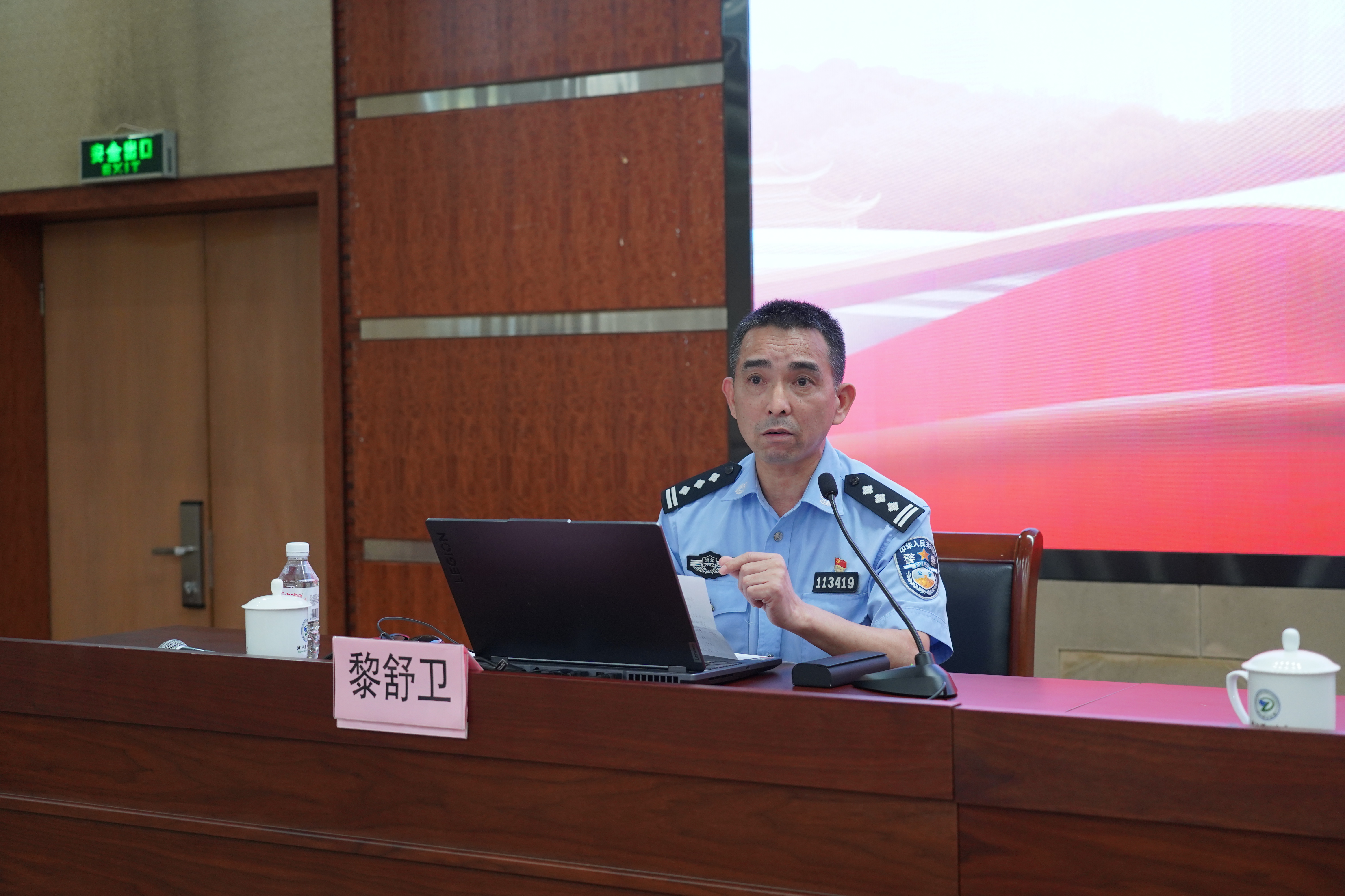 我校驻校警官黎舒卫,凭借对校园安全与治安管理的深刻理解和丰富一线处置经验,结合深厚理论功底与鲜活案例,重点聚焦校园矛盾纠纷的预防预警与现场高效处置策略,提供了针对性、操作性极强的专业指导,内容紧密贴合高校安全实际,令学员深受启发。