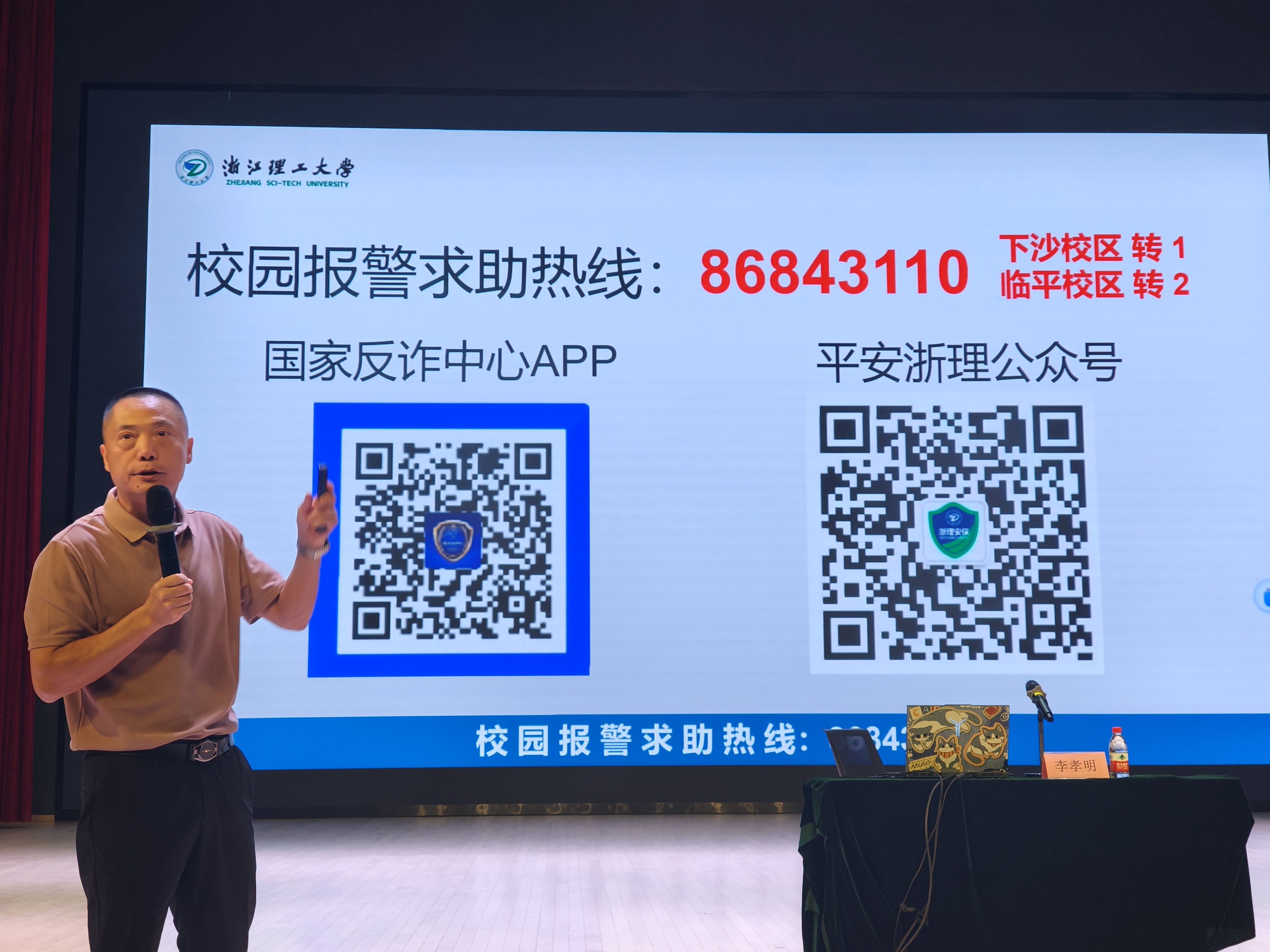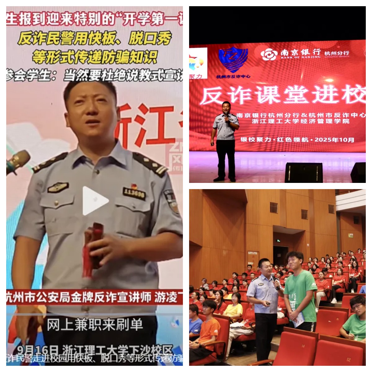 9月16日,学校特邀杭州市公安局金牌反诈宣传师游凌飞警官来校开展反诈专题讲座。游警官创新运用快板、脱口秀等形式,将真实案例转化为生动易懂的防范知识,在轻松氛围中有效传递反诈要点,现场师生积极参与,反响热烈。