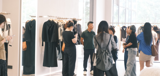 作为学院重要的战略合作伙伴,爱唯服饰与我院共建了“时尚产业研发中心”与“教学实践基地”,并捐赠设立“爱唯教育基金”,专项用于支持浙江理工大学纺织、设计等相关学科的建设与人才培养,为产学研协同发展注入了持续动力。在爱唯服饰行政总监姚南翔等负责人引导下,师生们首先走进企业代表品牌“艾诺丝雅诗”门店,从其秋冬新品的剪裁、工艺与面料中,直观感受品牌“都市、简约、优雅”的风格定位,并对企业发展历程与核心产品线建立了系统认知。