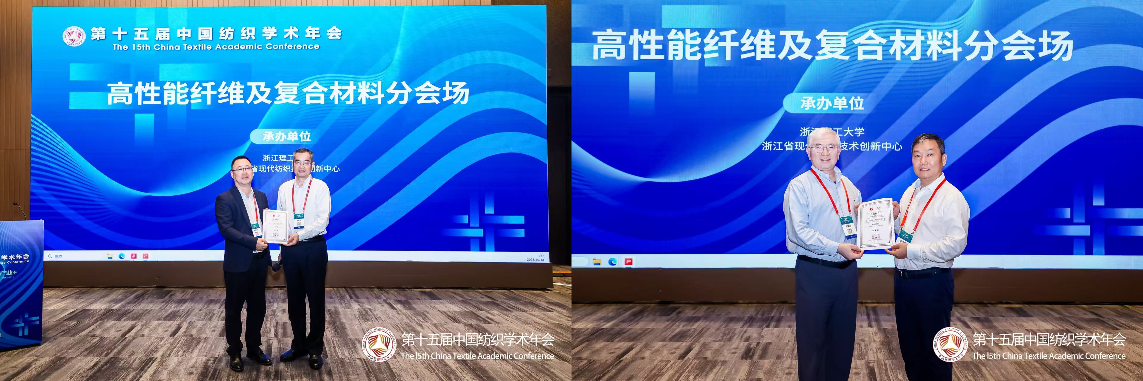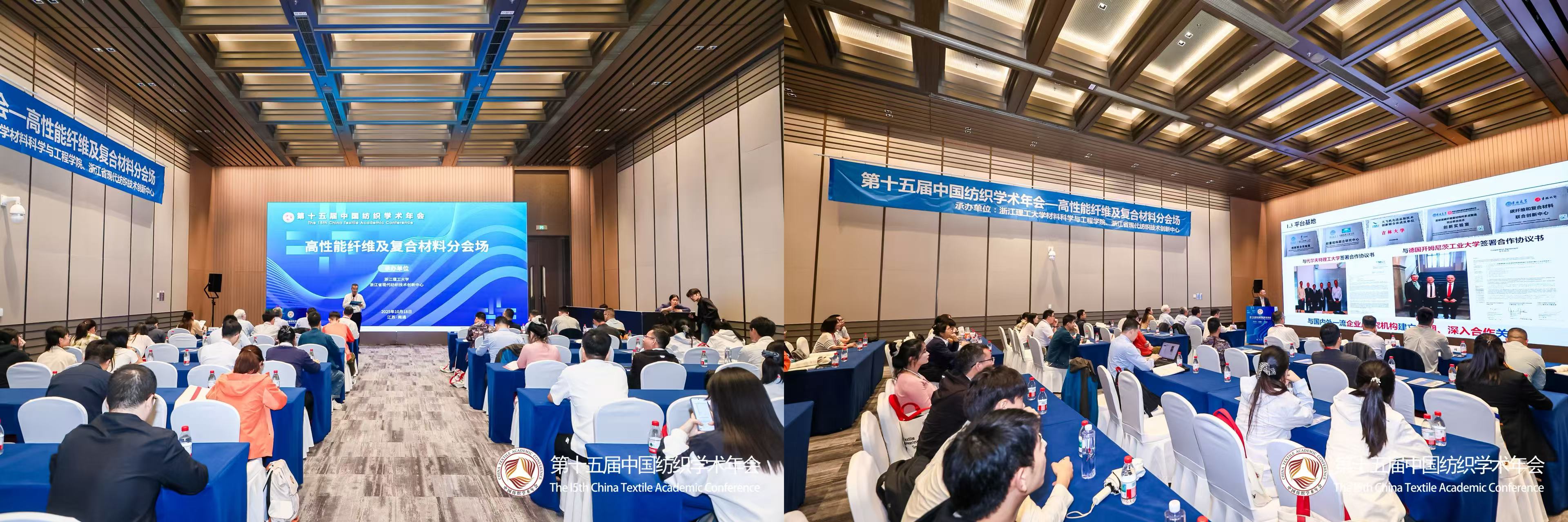 2025年10月17—19日,由中国纺织工程学会主办的第十五届中国纺织学术年会在南通举行。浙江理工大学材料科学与工程学院和浙江省现代纺织技术创新中心共同承办“高性能纤维及复合材料”分会场。来自相关高校与行业企业的专家学者等两百余人参加。会议上半场和下半场分别由浙江理工大学副校长姚菊明教授和材料科学与工程学院院长张先明教授主持。
