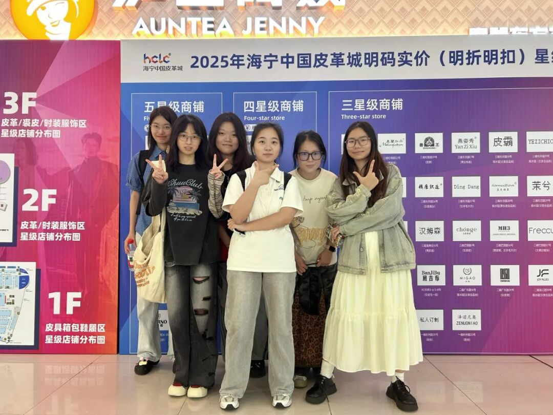 在企业访学之后,课程团队带领学生前往海宁中国皮革城开展市场调研,重点了解皮草产品在当季市场中的流行趋势、消费结构及品牌定位。通过对不同品牌专柜、渠道类型和价格体系的观察与记录,学生们系统分析了皮草类服装在材料创新、设计表达及消费体验方面的最新动态。