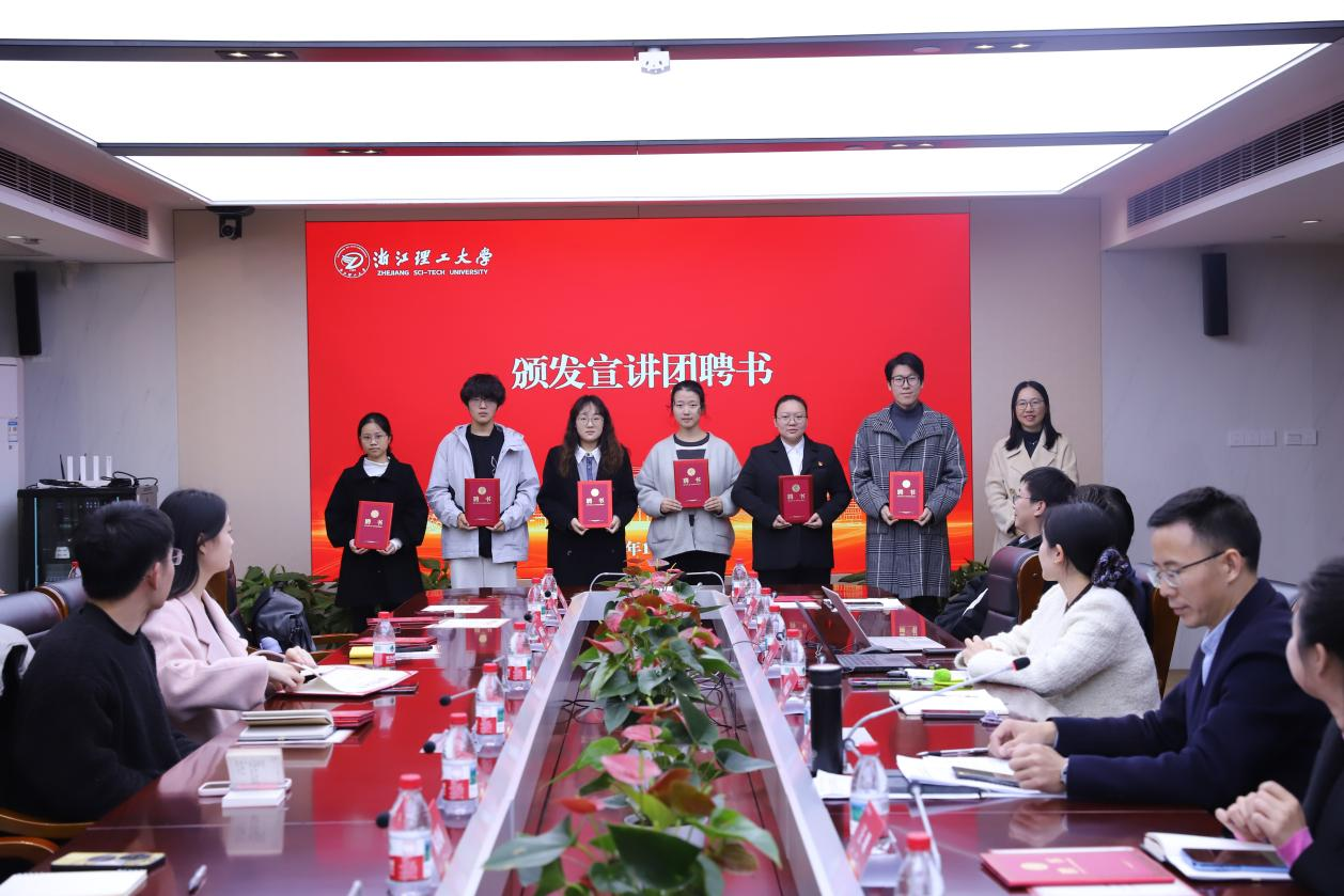 韩晶晶为宣讲团成员代表颁发聘书,勉励大家担当起传播真理、引领思想的光荣使命。