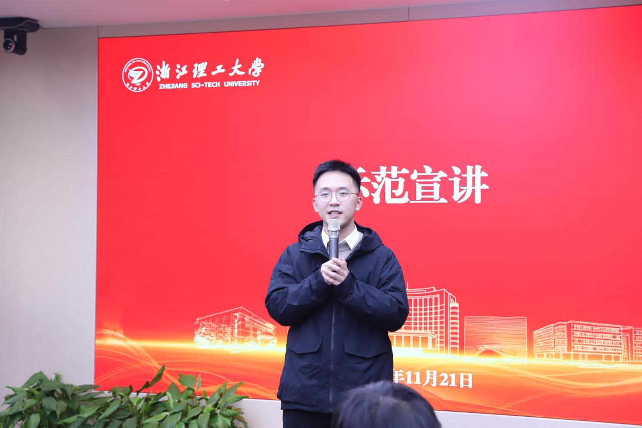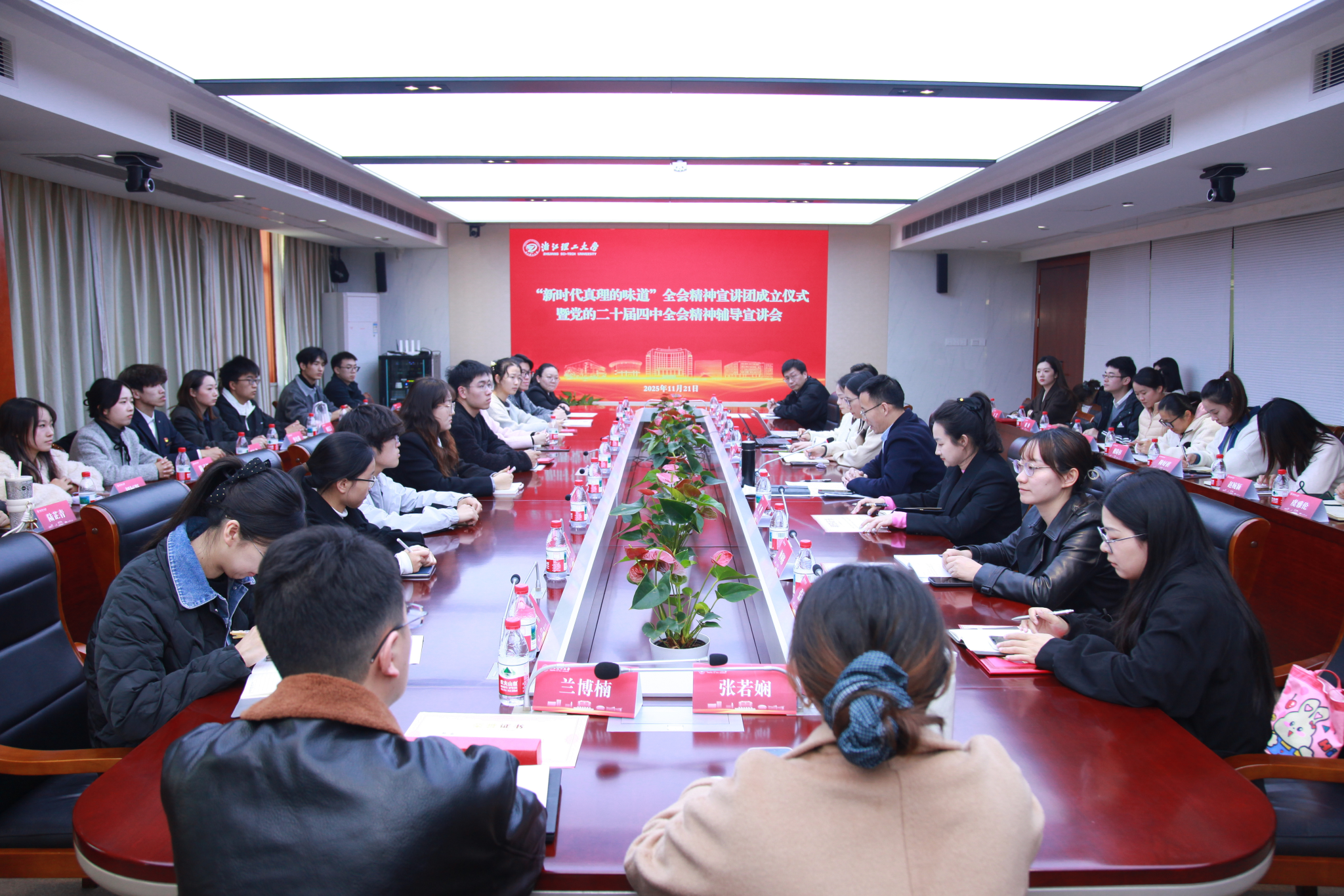 为深入学习宣传贯彻党的二十届四中全会精神,推动党的创新理论深入基层、深入人心,11月21日下午,浙江理工大学在下沙校区行政楼215会议室召开“新时代真理的味道”全会精神宣讲团成立仪式暨党的二十届四中全会精神辅导宣讲会。机关党委常务副书记韩晶晶出席会议。党委宣传部副部长周照东主持会议。
