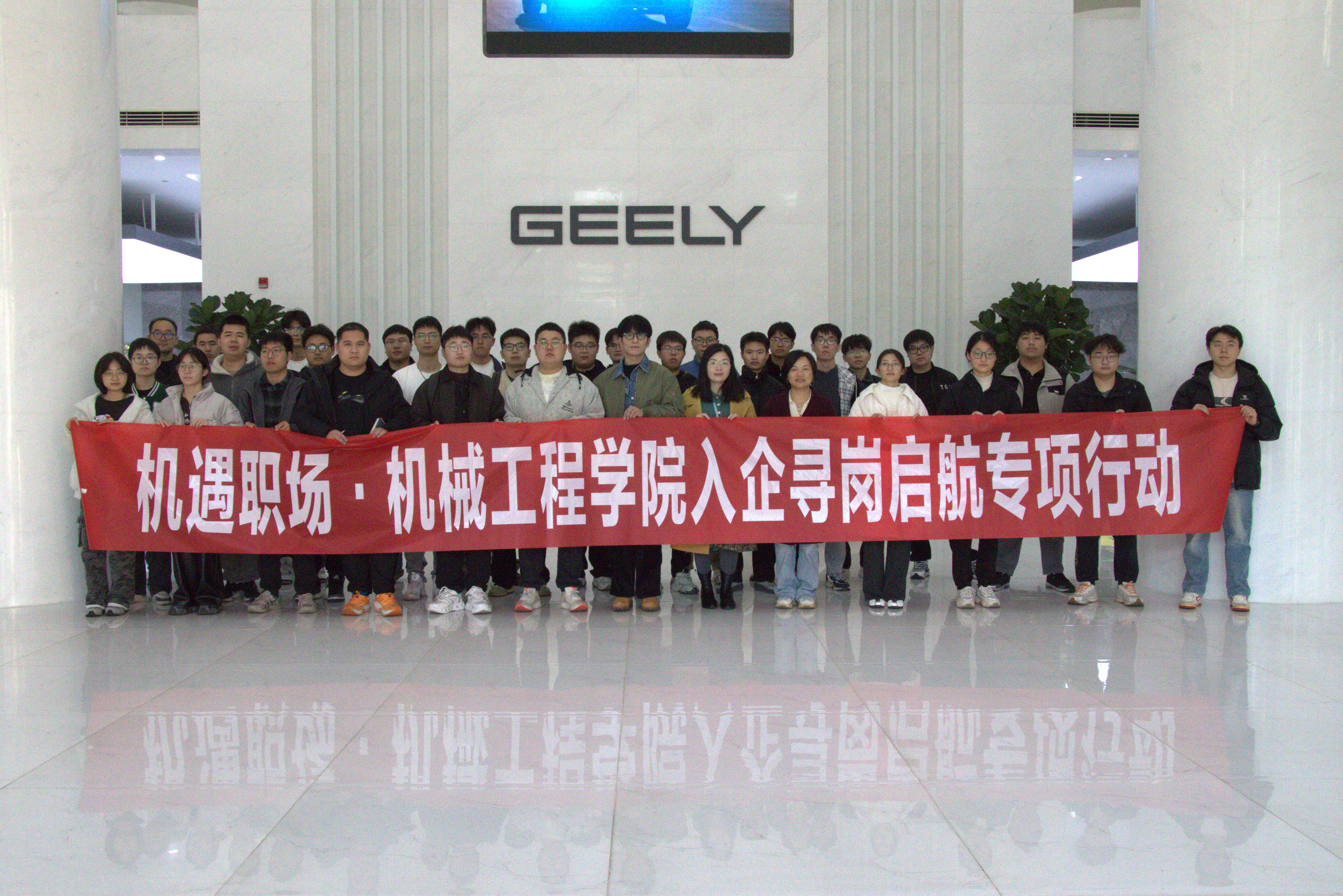 11月21日,机械工程学院组织应届毕业生前往浙江吉利控股集团有限公司,开展机遇职场·入企寻岗启航专项行动。本次活动通过沉浸式参观、深度座谈交流与现场求职对接,让同学们近距离感受龙头企业魅力,为职场启航积蓄力量。学院党委副书记陆秋萍、就业服务工作辅导员程宇龙带队前往。