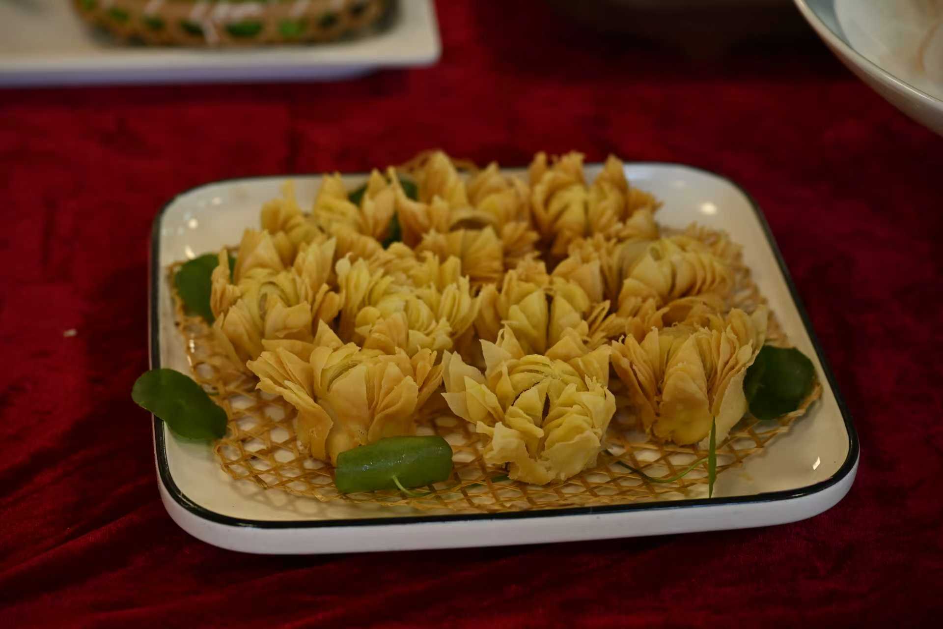 此次比赛内容是日常早餐供应中的肉包、麻球以及特色创新品种。为全力备战此次大赛,两位参赛师傅提早半个月便开始优化面点配方、打磨手法技巧、雕琢造型创意,对每一个环节都精益求精、反复锤炼。赛场上,二人沉着应战、稳定发挥,以娴熟的操作手法、精准的细节把控高质量完成全流程比拼。两位师傅制作的肉包、麻球色香味形俱佳,姚雄丰的创新作品 “荷花酥”口感层次丰富,牛成成的创新作品“莲藕酥”造型精巧别致,分别获得个人银奖和铜奖。