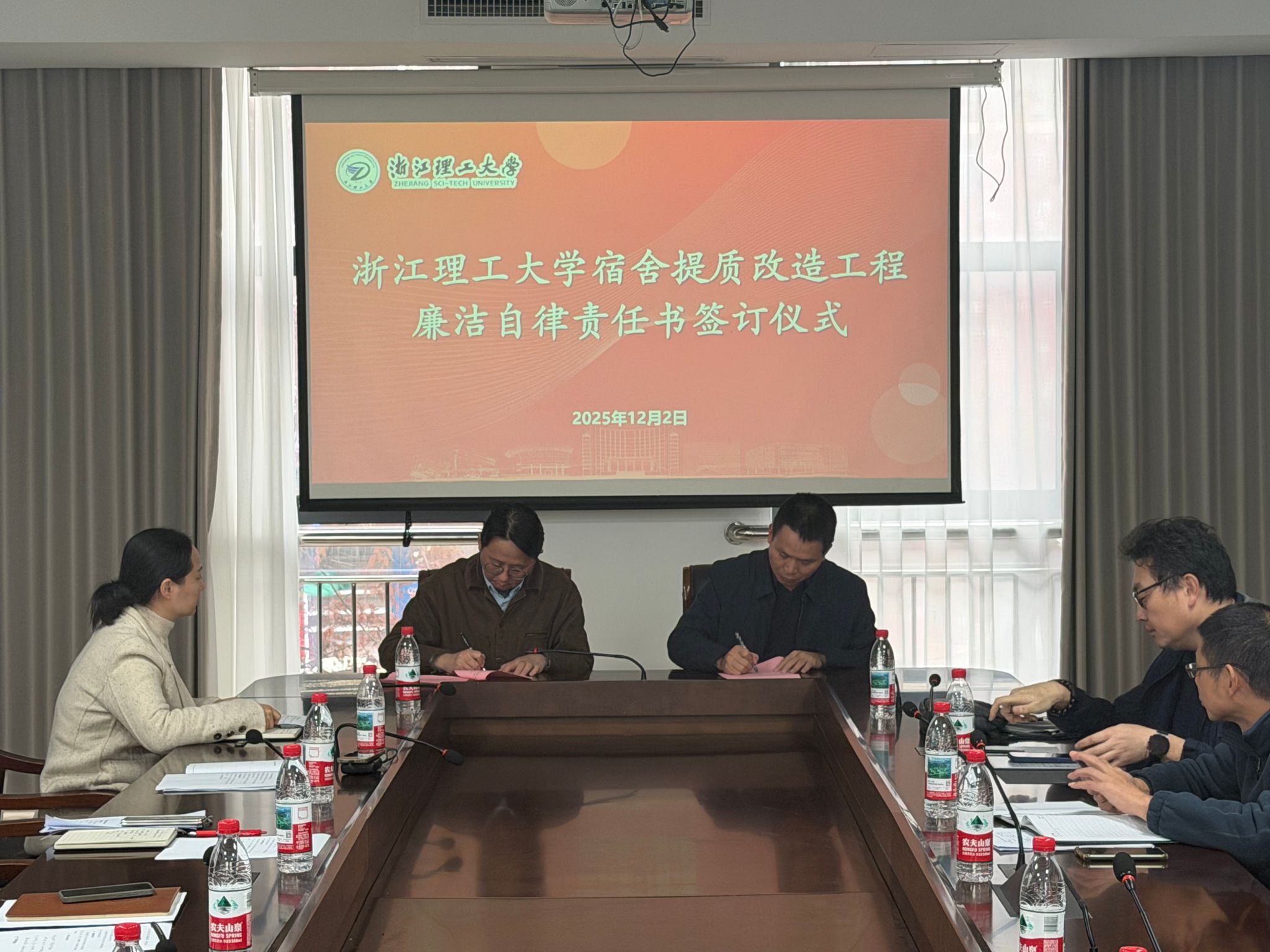 12月2日下午,我校举行浙江理工大学宿舍提质改造工程开工暨廉洁自律责任书和承诺书签订仪式。