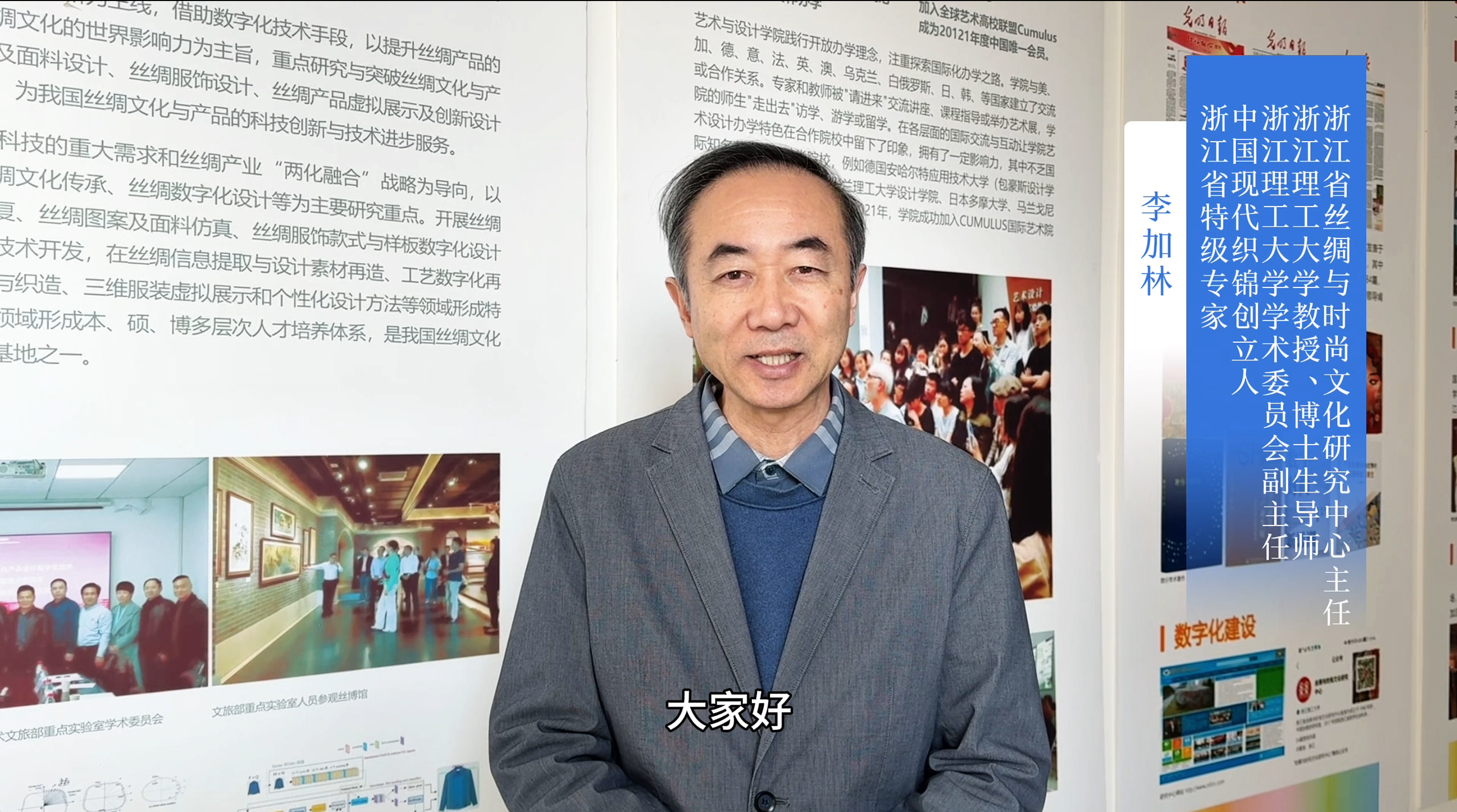 浙江理工大学学术委员会副主任、浙江省丝绸与时尚文化研究中心主任李加林教授进行视频致辞,对本次研讨会的召开表示热烈祝贺,并对与会嘉宾表示诚挚欢迎。